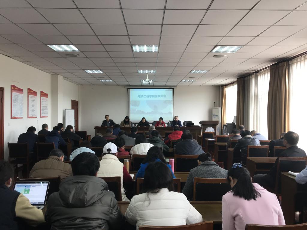 3月1日下午14点,电子工程学院在气象楼215会议室召开全院大会,学院领导班子及全体教职工参加了本次会议,会议由院长杨玲主持。