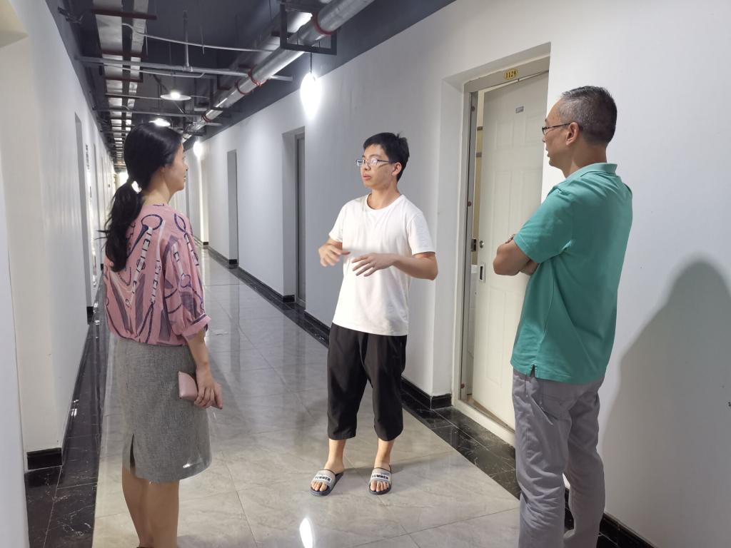 为了解研究生新同学的情况,向同学们传达学院的热情关怀与殷切期望。9月10日下午四点半,电子工程学院党委书记缪燕平,副书记杨勇、研究生辅导员赵远一同走进电子工程学院的研究生宿舍进行走访。到寝室后,老师们看望了各个寝室的研究生新生,了解新生状况,检査寝室安全隐患,提醒水电安全,和研究生新生亲切交谈,解答研究生新生各种疑惑。