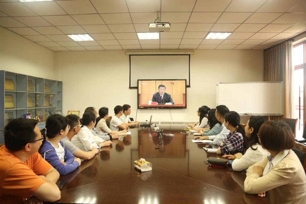 2019年4月30日上午10:30,电子工程学院组织师生于气象楼216会议室集体观看了纪念五四运动100周年大会,认真聆听学习了习近平在纪念五四运动100周年大会上的重要讲话。