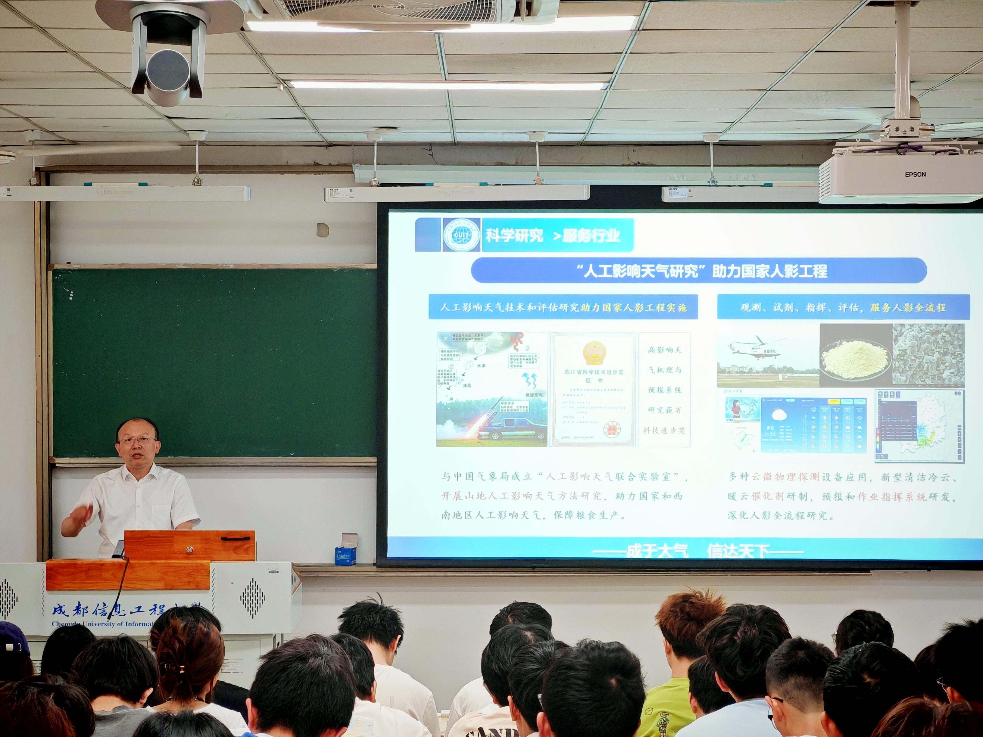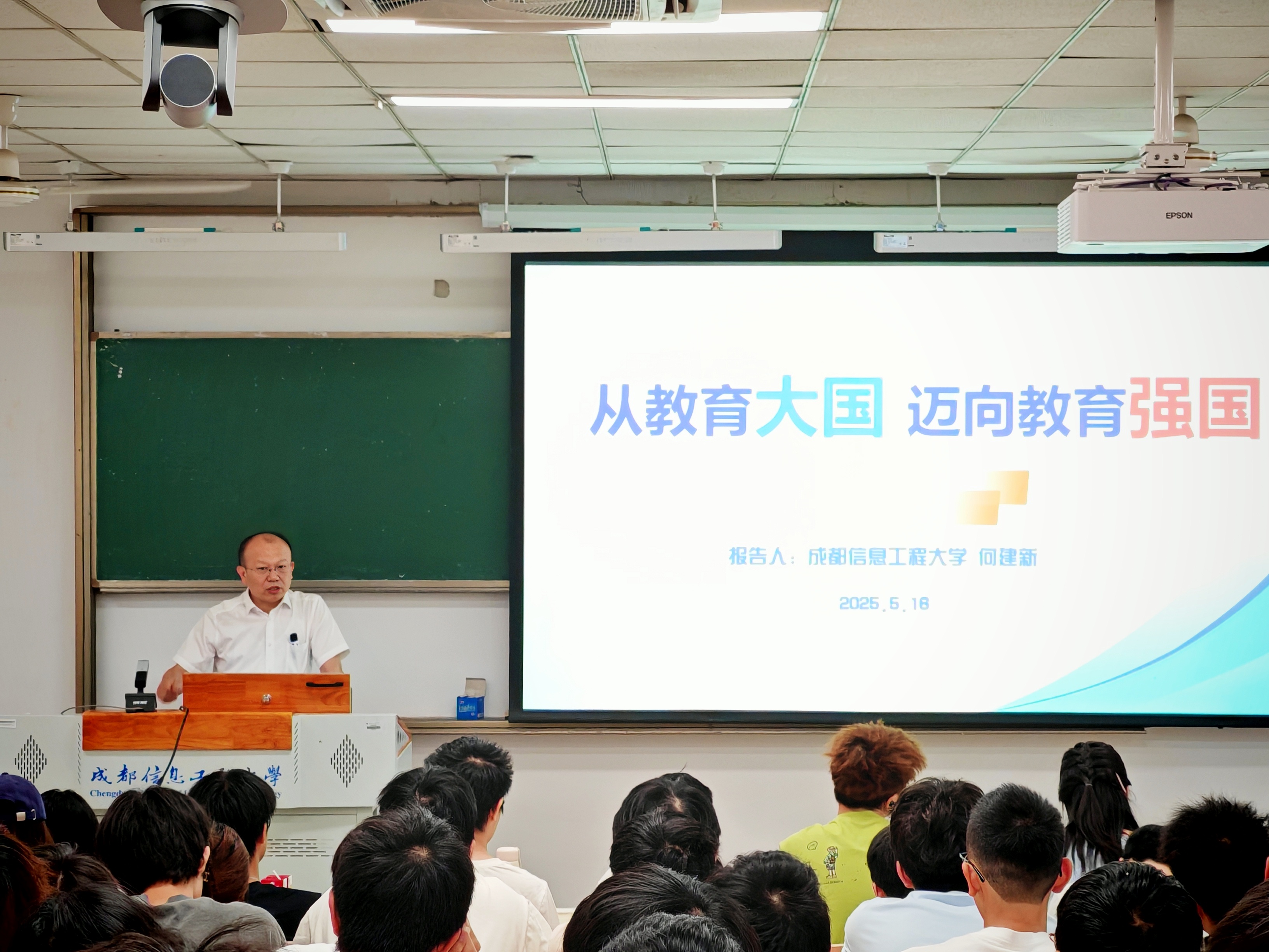 5月16日,学校校长何建新为电子工程学院(大气探测学院)2023级电子信息科学与技术专业本科生讲授主题为“从教育大国迈向教育强国”的《形势与政策》课。