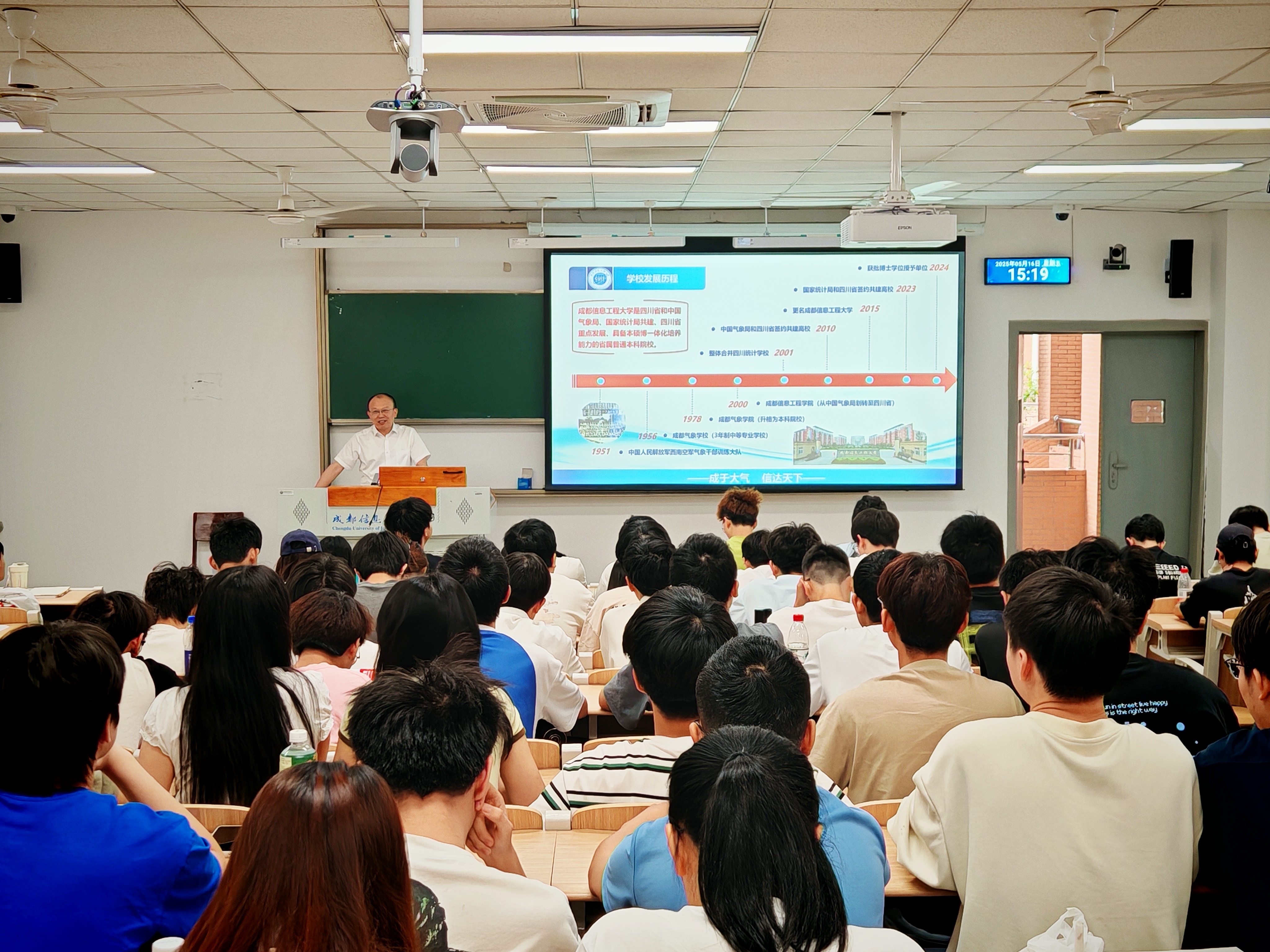 何建新表示,随着新一轮科技革命和产业变革深入发展,中国科技通过不断发展,目前进入“三跑并存”新阶段。结合电子信息科学与技术专业特点,他深入剖析了电磁波技术、雷达技术、天线技术的发展现状与前景,激发同学们对专业领域的探索热情。同时,他还从学科专业建设、科研平台搭建、高水平论文成果、行业服务贡献等方面,介绍了学校的发展历程,让同学们对学校的发展脉络与未来方向有了更清晰的认识。
