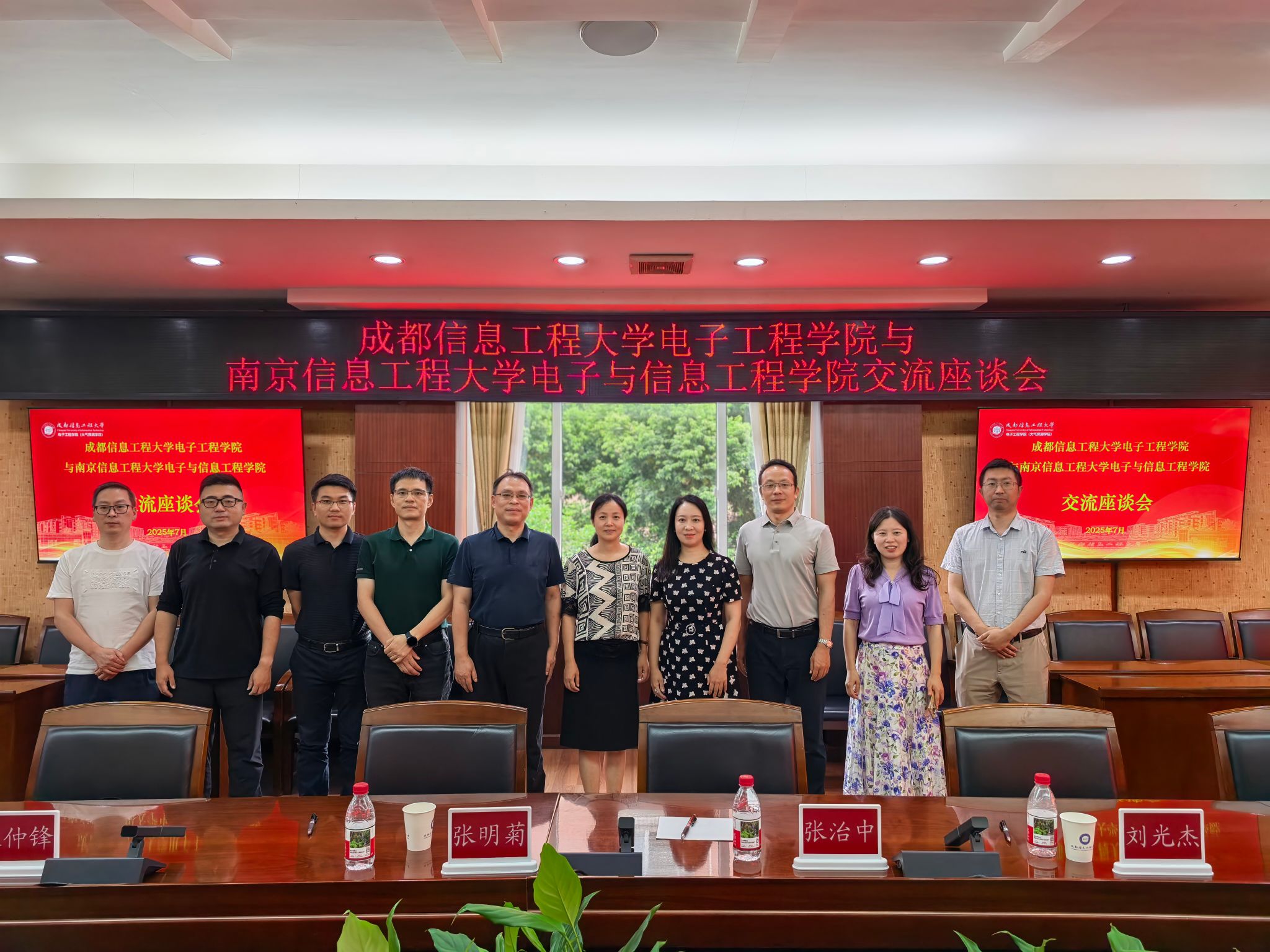 2025 年 7 月 25 日,南京信息工程大学电子与信息工程学院党委书记张明菊、院长张治中一行到访电子工程学院开展调研交流活动。调研座谈会由电子工程学院院长张福贵主持,电子工程学院党委书记缪燕平、光电工程学院院长杨定宇、国际交流与合作处处长杨智鹏及电子工程学院相关领导、教师代表出席会议。