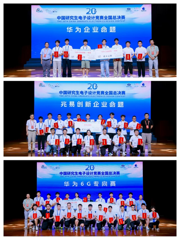 作为面向电子信息领域研究生群体举办的重要赛事,研电赛是为国家发掘培养卓越工程师的重要平台,旨在打破学科专业壁垒,瞄准科技前沿和关键领域,推动学科交叉融合,探索学科人才科研一体化,创新人才培养模式。第二十届研电赛于2025年3月正式开赛,共吸引来自全国333所电子信息类研究生培养高校及科研院所的8228件作品参赛,参赛师生超过34000人。经过初赛评审选拔,来自全国八大赛区的635支参赛团队2000余名师生代表齐聚鹏城,向中国研究生电子设计竞赛的最高荣誉发起冲击。在全国总决赛中,我校研究生团队获得技术类竞赛二等奖1项、三等奖1项,商业计划书团队三等奖1项,“华为6G”专向赛三等奖1项,“华为”企业命题二等奖1项、“兆易创新”企业命题三等奖1项。