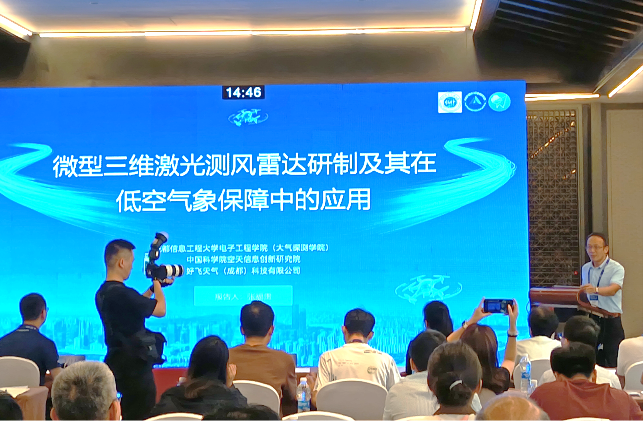 在大会分会场报告环节,学院院长张福贵做了题为《微型三维激光测风雷达研制及其在低空气象保障中的应用》学术报告,详细介绍了团队自主研发的微型三维激光测风雷达的设计思路、关键技术突破及应用效果。该设备具有轻量化、便携化和高精度探测等优势,可对低空风场进行实时、多维度监测,弥补了传统观测手段在空间分辨率和灵活性上的不足。该技术在无人机飞行管理、通航运行、低空应急气象服务等方面具有重要应用价值,为提升我国低空气象保障水平、推动低空经济高质量发展提供了坚实支撑。