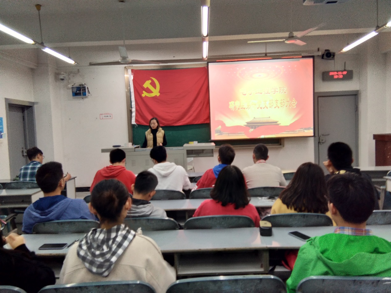 2019年11月7日晚,电子工程学院研究生第一党支部在1303教室召开了支部大会,会议由支部书记杨倩主持。