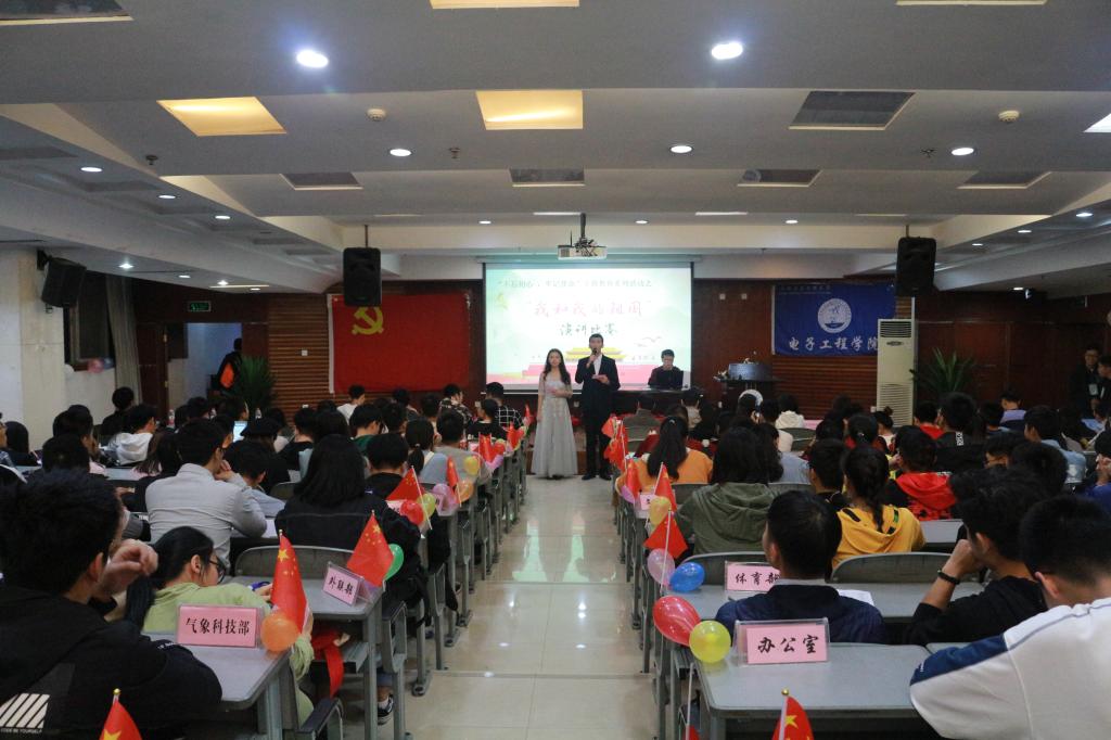 2019年10月14日晚,由电子工程学院党委主办、电子工程学院团委承办的“不忘初心、牢记使命”主题教育之“我和我的祖国”演讲比赛(决赛)在学术报告厅隆重举行。电子工程学院党委副书记杨勇、学生科科长阮丽娜、学生科副科长肖艳、团委书记周意超、团委副书记苏露出席本次活动并担任评委。电子工程学院全体学生党员、入党积极分子参加了本次活动。