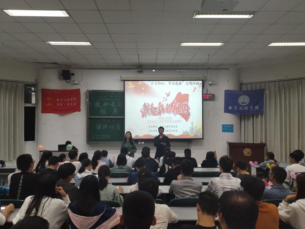 2019年10月10日,由电子工程学院党委主办,电子工程学院团委承办的“不忘初心、牢记使命”主题教育之“我和我的祖国”演讲比赛在4313教室正式举行。电子工程学院学生党支部全体党员、大二大三年级入党积极分子参加了本次活动。