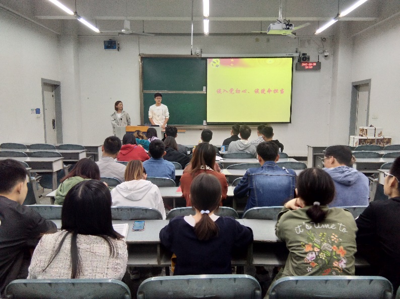 首先,全体党员一起学习了习近平总书记在“不忘初心、牢记使命”主题教育工作会议上的重要讲话。随后,观看了“不忘初心、牢记使命”主题教育相关的新闻报道。最后,陈旭东上台分享了自己的入党初心和入党使命。本次主题党日活动,以深入学习贯彻习近平新时代中国特色社会主义思想为主要内容,结合学院具体实际,坚持理论指导实践,着眼基层学生党员理论水平和学习能力的提升。