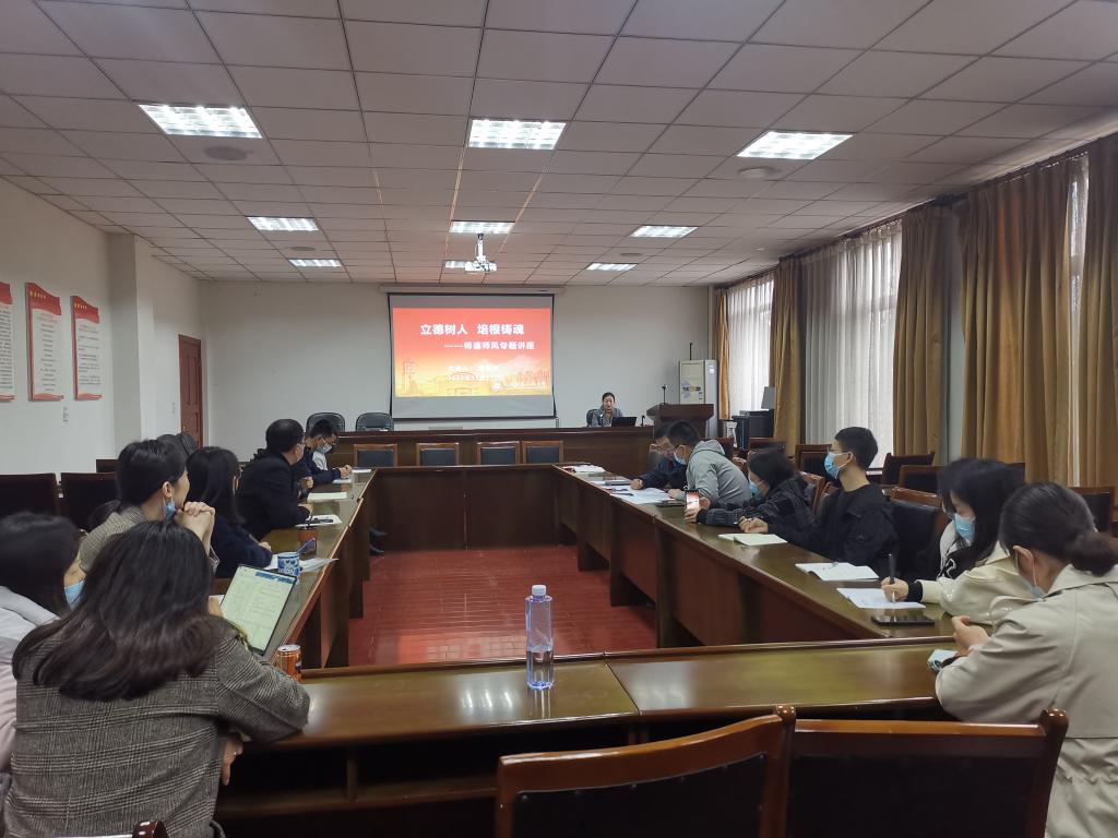 11月25日下午,学院党委在气象楼215会议室开展了青年教师师德师风专题讲座,讲座由学院党委书记缪燕平主讲,学院近五年入职的青年教师参加了此次讲座。