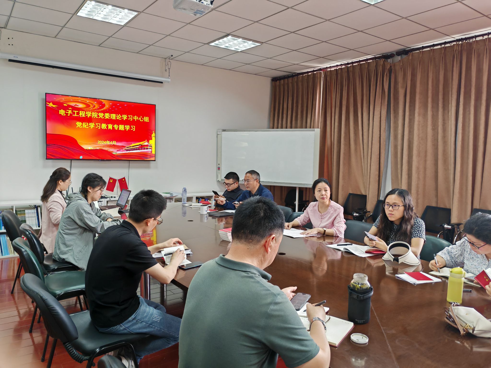 在全党开展党纪学习教育,是以习近平同志为核心的党中央作出的重大决策部署,是加强党的纪律建设、推动全面从严治党向纵深发展的重要举措。4月26日上午,电子工程学院党委理论学习中心组在气象楼216会议室开展党纪学习教育专题学习,学院党委委员、教工和学生党支部书记、支委委员共同参与了本次学习。