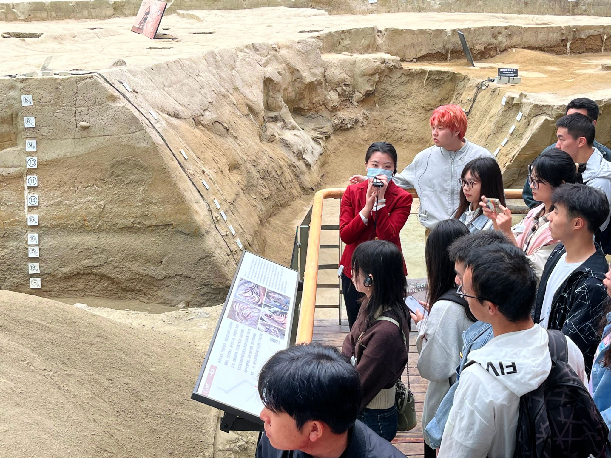 金沙遗址博物馆,作为成都的文化瑰宝,珍藏着无数历史的见证。在讲解员的细致讲解下,同学们对太阳神鸟雕塑的起源、技术特点有了更为深刻的认识。这尊雕塑不仅是古蜀人智慧与艺术的结晶,更成为了每一位同学心中古代工匠非凡创造力的生动写照。此外,同学们还近距离观赏了包括象牙在内的多件国宝级文物,这些原本静默的文物在讲解员的生动描述下仿佛焕发了新生,让同学们对古蜀国的社会生活与文化风貌有了更为直观且深刻的领悟。