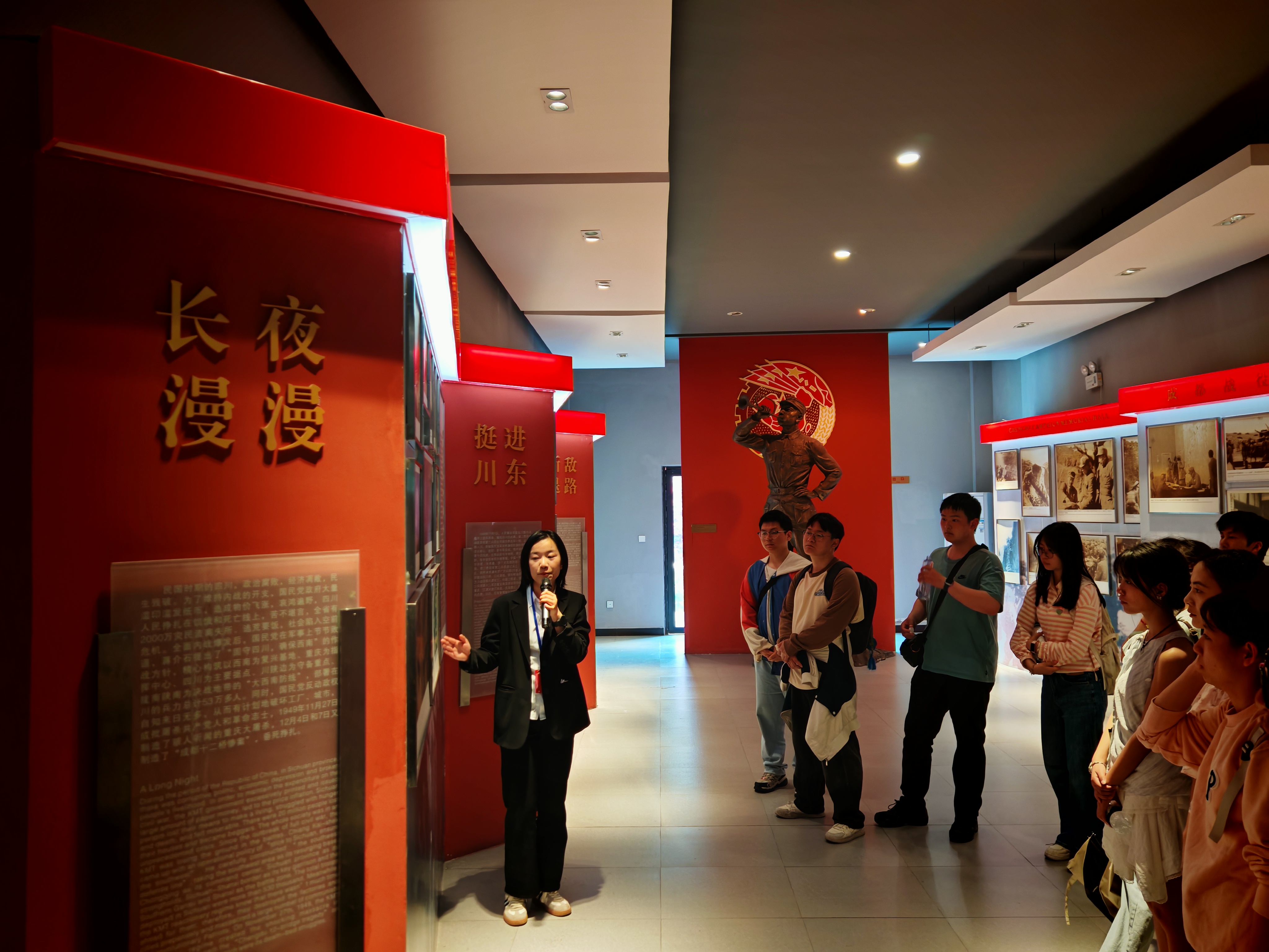 活动当日,全体师生党员怀着崇敬的心情步入成都战役纪念馆。馆内丰富的历史文物、详实的文献资料以及生动的场景复原,全面展现了成都战役那段波澜壮阔的历史;“长夜漫漫”、“挺进川东”、“断敌退路”、“南下合围”、“决战川西”、“解放成都”六个主题展区以时间顺序,集中展示了成都战役爆发的历史过程与解放军官兵的英勇事迹,详细描绘了先烈们为解放成都、为人民幸福浴血奋战的壮烈场面。