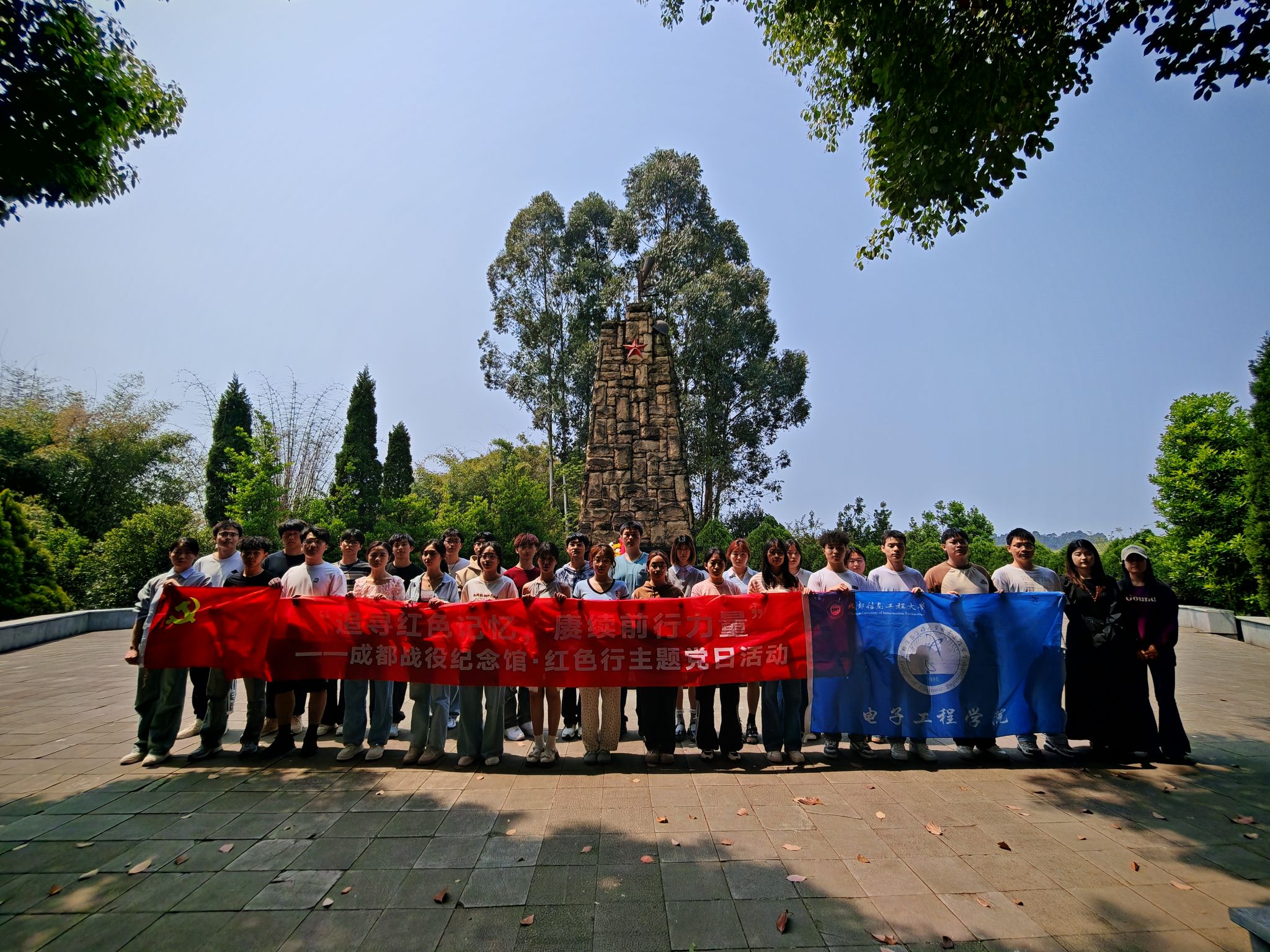 为缅怀革命先烈,传承红色基因,弘扬英烈精神,4月10日,电子工程学院党委、资源环境学院党委、马克思主义学院党委组织师生党员一行,赴四川省蒲江县成都战役纪念馆开展“追寻红色记忆,赓续前行力量”-成都战役纪念馆红色行.主题党日活动。