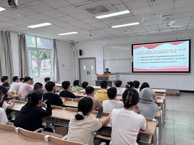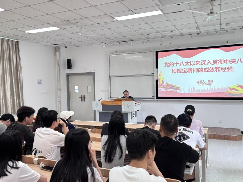 副院长史朝从党的作风建设理论切入,系统梳理了中央八项规定出台的历史背景与现实意义。他指出,八项规定作为全面从严治党的“第一刀”,不仅重塑了党内政治生态,更成为新时代密切党群关系的关键抓手。史朝寄语学生党员,学生阶段是人生观形成的关键时期,要以中央八项规定精神为镜,扣好人生的“第一粒扣子”,未来无论从事何种职业,都要坚守原则,坚守底线。