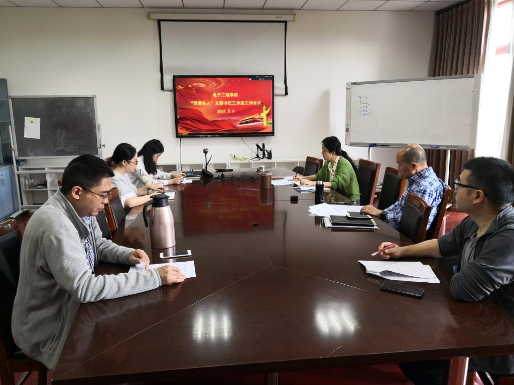 5月6日上午,电子工程学院在气象楼216会议室召开了“双带头人”支部书记工作室工作会议。本次会议由教工二支部“双带头人”工作室负责人王海江主持,学院党委书记缪燕平、组织员高永华出席会议并指导工作开展,工作室成员王皓、阮丽娜、肖艳等参加了会议。