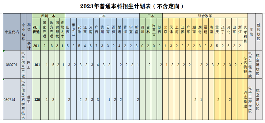 电子工程学院(大气探测学院)2023年普通本科招生计划表(不含定向)