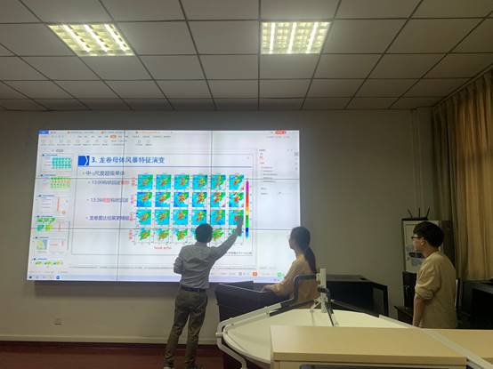 第一位汇报者为2019级唐佳佳作““0612”高邮龙卷母体风暴演变特征及龙卷涡旋形成机理分析”分享,通过雷达反射率回波分析了龙卷母体风暴演变特征,并由四部雷达反演风场廓线来发现龙卷涡旋形成机制。分享结束后,同学与汇报者进行了热烈的交流与讨论,指导老师进行了最终点评。