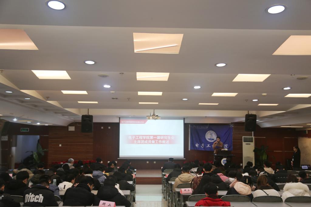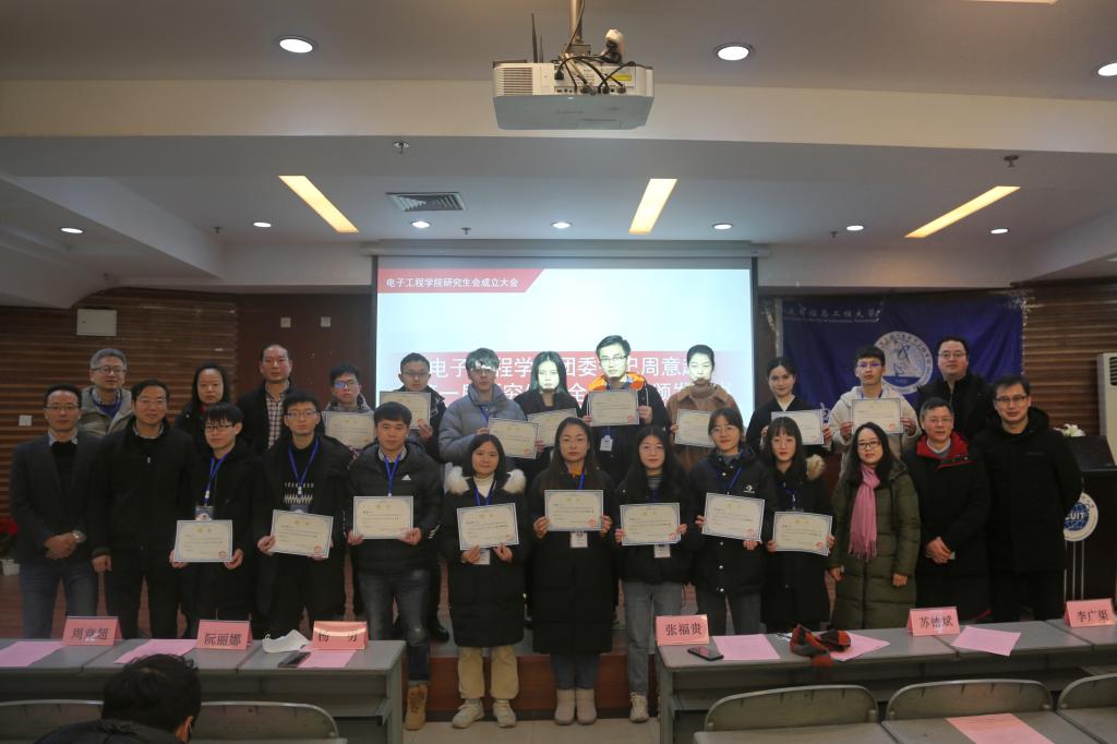 学院学生科科长阮丽娜宣读电子工程学院第一届研究生会成员名单,学院团委书记周意超书记为研究生会全体成员颁发证书。最后由研究生会主席刘于新作研究生会工作概述,介绍目前研究生会的组织架构,以及未来活动开展的方向。对研究生会的内部队伍组建提出了相关要求,希望在学院全体研究生的信任与支持下,创建电子工程学院的辉煌。