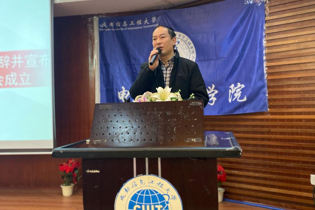 学院党委副书记杨勇为第一届电子工程学院研究生成立大会致辞,他对本次参加和支持本次成立大会的老师与全体研究生表示欢迎和衷心感谢。随着研究生规模的不断扩大,为进一步加强学院研究生制度的规范化与体系化,营造浓厚的校园文化环境。研究生会的成立是非常有必要的。接下来,杨勇宣布电子工程学院研究生会正式成立并为研究生会授旗。