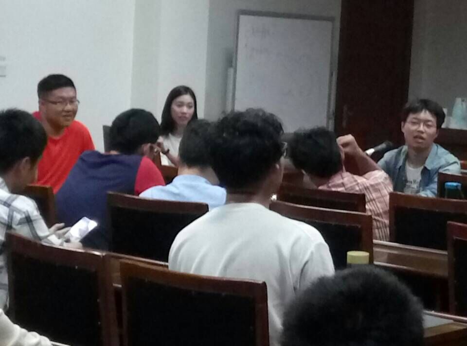 2017年6月16日晚7点,气象楼215,主讲人:从北京回来的腾玉鹏、张雷师兄,漂亮的赵静师姐。在毕业之前,学院另外三位优秀的师兄师姐给研一研二的师弟师妹们分享一些科研、考博、找工作经验。三位师兄师姐研二研三均在北京学习两年,毕业后张雷师兄将在气科院读博深造,他详细讲解了考博备考过程中的一些注意事项。腾玉鹏师兄做了很多的补充,也提醒了师弟师妹们在北京要学会与校外导师、身边外校研究生相处。赵静师姐详细介绍了我们院学生研二去北京的几个地点,包括中科院大气所、国家卫星气象中心、探测中心、南郊气象局大院、昌平华云升达。她也介绍了自己的科研学习经历,找工作经验。师弟师妹每问一个问题,师兄师姐一一回答。他们也分享了在北京的所见所闻,现场气氛活跃。