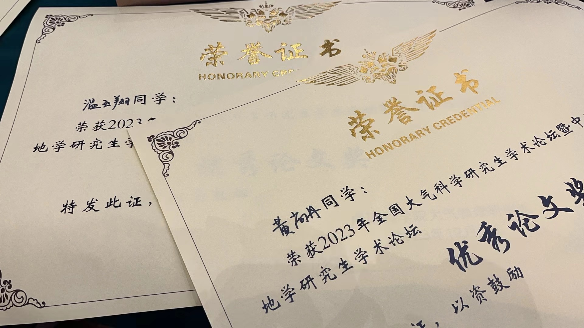 我院黄尚丹与温玉翔两位同学参加了此次会议,在论坛期间深入参与各项活动,聆听了来自全国各高校的专家、青年学者以及研究生们的学术报告和专题研讨。同时就气象探测天气雷达相关领域对自己的研究成果开展了口头汇报,与其他高校师生就各自的研究成果与科研经验进行了深入交流。同时,两位同学均凭借出色的汇报,在此次论坛中荣获“优秀论文奖”。