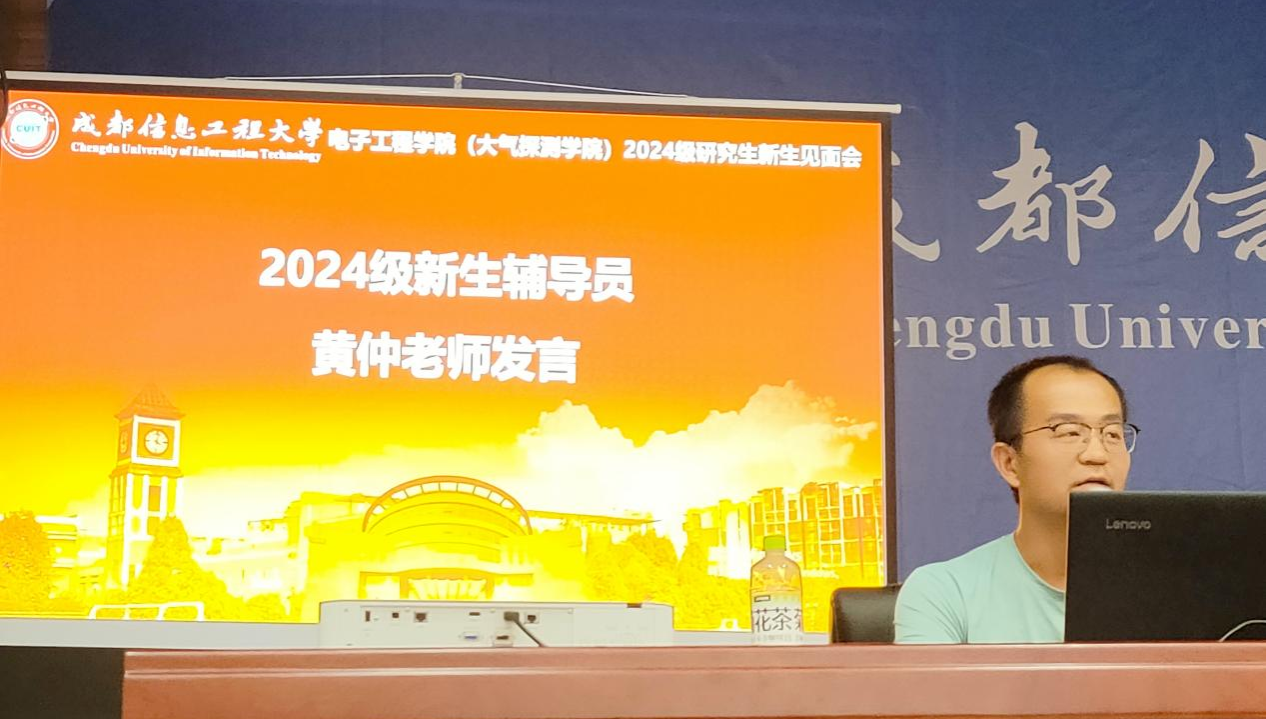最后,新生辅导员黄仲老师也发表了讲话。他提到,作为新生的辅导员,他将为大家提供全方位的支持与帮助。他强调了心理健康和课外活动的重要性,鼓励新生们主动探索和参与社团活动,丰富课外生活,建立良好的人际关系。良好的心态和社交关系是顺利完成学业的重要基础,希望同学们在学术与生活上都能有所收获。