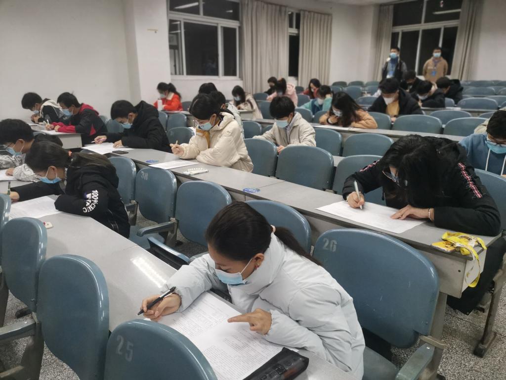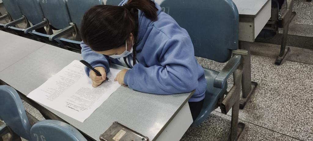“四史”知识竞赛是面向于全校的校级活动,“四史”指的是“国史、党史、社会主义发展史、改革开放史”。比赛开始前,许多参赛选手都站在考场口温习题库,热忱的眼神标明他们必胜的决心。临近考试时,一大批的参赛人员前往签到处签到,有些人紧张的握笔都颤抖,他们对知识竞赛的重视程度可见一斑。考试开始后,应疫情防控要求,所有参赛人员都是间隔开坐。而参赛选手们也是十分自觉地将手机倒扣于桌面,没有出现违规行为。开考后同学们开始埋头奋笔疾书,可以看出同学们准备的十分充分,半小时时间一过,就已经陆陆续续有同学交了卷子,自信的神态更体现出成信大学子的素养。最后一位考生离开考场后,至此,“四史”知识竞赛初赛圆满结束了。