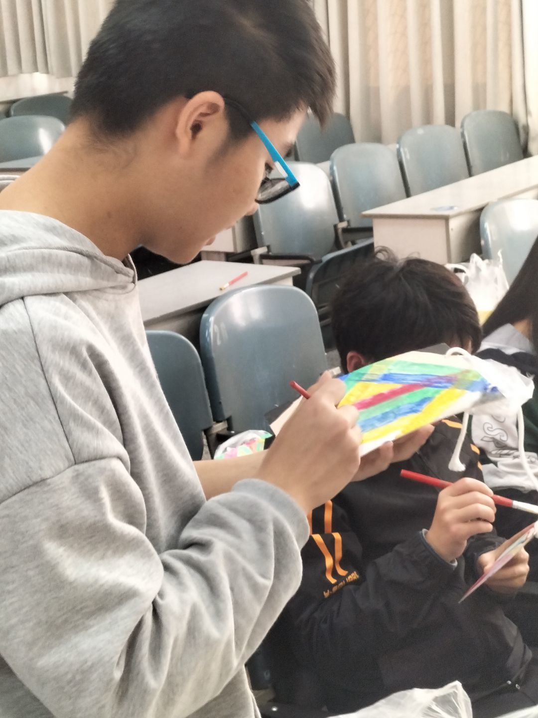 在活动开始前,志愿者们先去学校周边观察,调查了校园内的树种,并且用A4纸、绳子和防水塑料袋制作了多个树牌,为后续工作作保障。27下午2志愿者们在教室开展了画树牌活动,此次活动面向全校,参与人员青志协电子分会五人和报名活动的四人组成。大家都绞劲脑汁,用颜料在树牌上画出好看的图案,再由写字比较好的人在树牌上写上环保标语和事先调查出来的树的种类和简介,最后把树牌晒干,完美的树牌制作完成了28日上午10点,由青志协的三名志愿者带上树牌去校园各个地方挂树牌,现在大家在校园里就可以看到这些由干事们精心制作的树牌了呢。