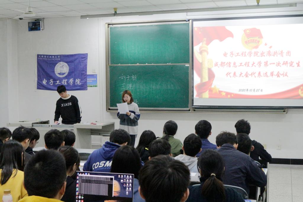 【本网讯】2020年10月28日晚上7:00电子工程学院出席共青团william威廉中文第一次研究生代表大会代表选举会议在教室1302顺利进行。参会人员有电子工程学院团委书记周意超、研究生代表大会代表候选人及研究生代表投票人。