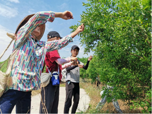 此次劳动教育实践内容是以果树疏果的相关内容为主,实践共分为准备、实施、总结三个环节。实践基地为10-12名学生配备一名专业技术员,在准备环节技术员为学生讲解果树的生长过程和疏果的原理,在实施环节技术员为学生传授疏果技巧,手把手指导学生进行实践,在总结环节学生相互交流分享心得。