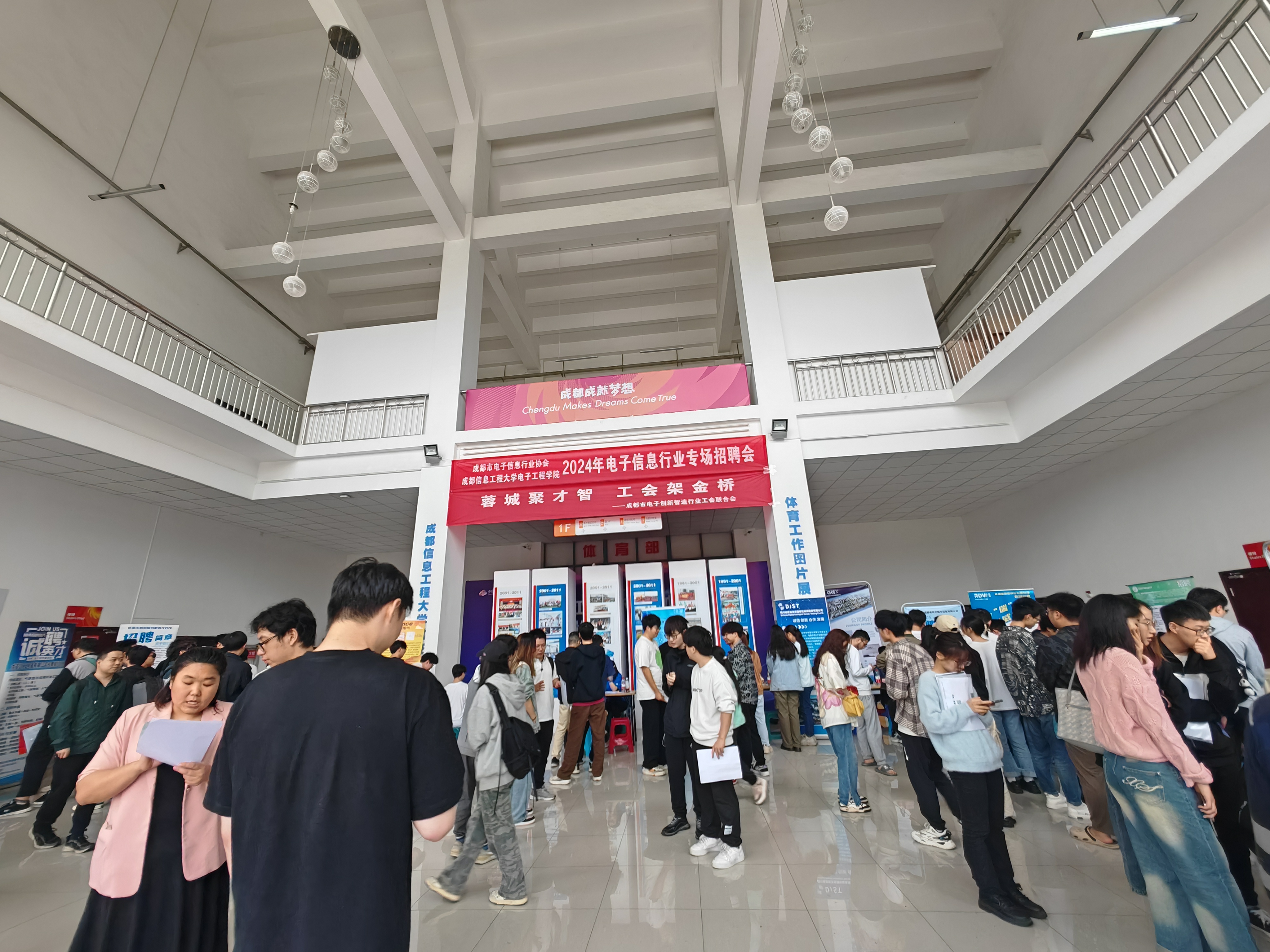 4月18日下午,电子工程学院联合成都市电子信息行业协会在我校体育馆举办了2024年电子信息行业专场招聘会。