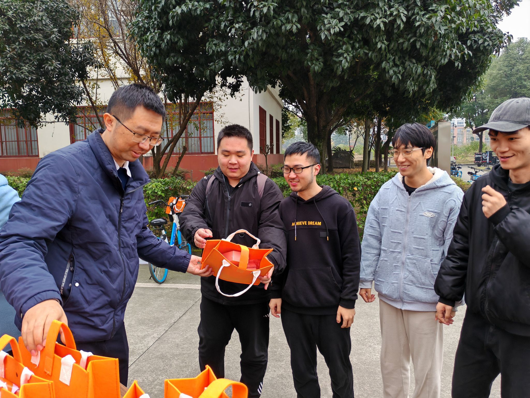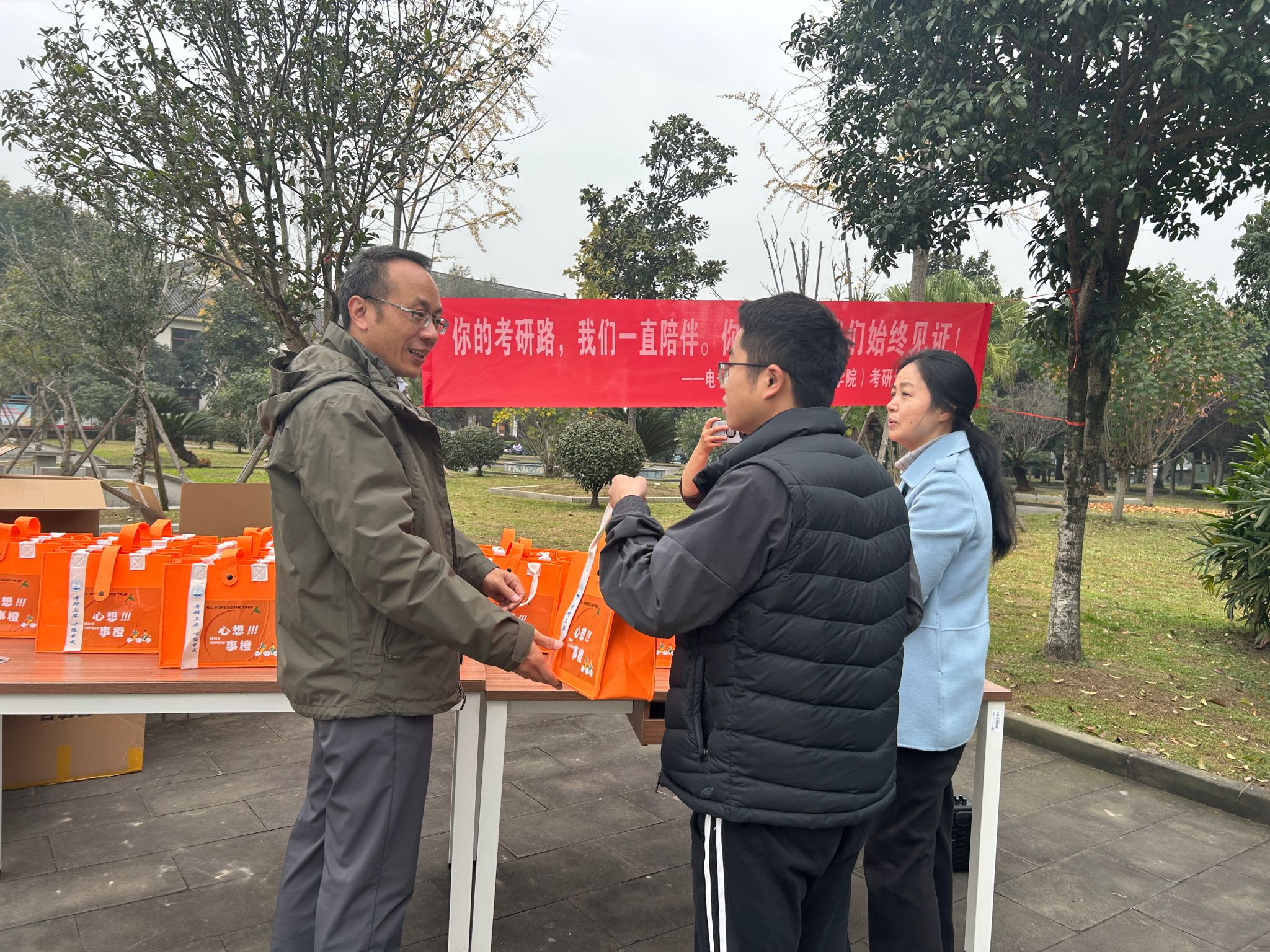 12月3日上午,电子工程学院在综合气象观测场旁举办了主题为“考研路一直陪伴”的2024年考研送温暖活动。学院党委书记缪燕平、院长张福贵、副书记杨勇、副院长杨智鹏与学院毕业班辅导员将慰问礼物送给2021级考研同学、2022级考博同学,为同学们进行备考前的鼓励。