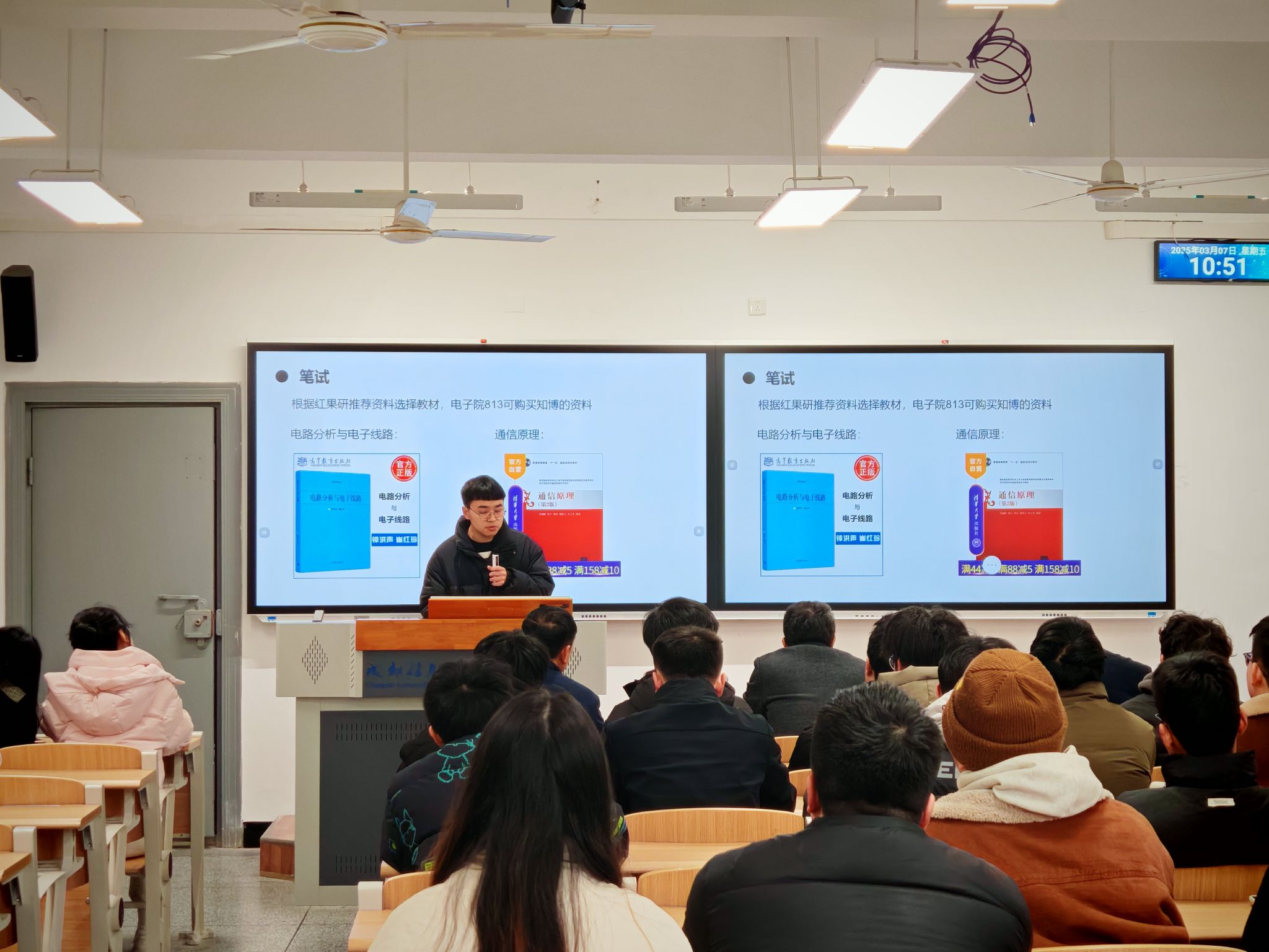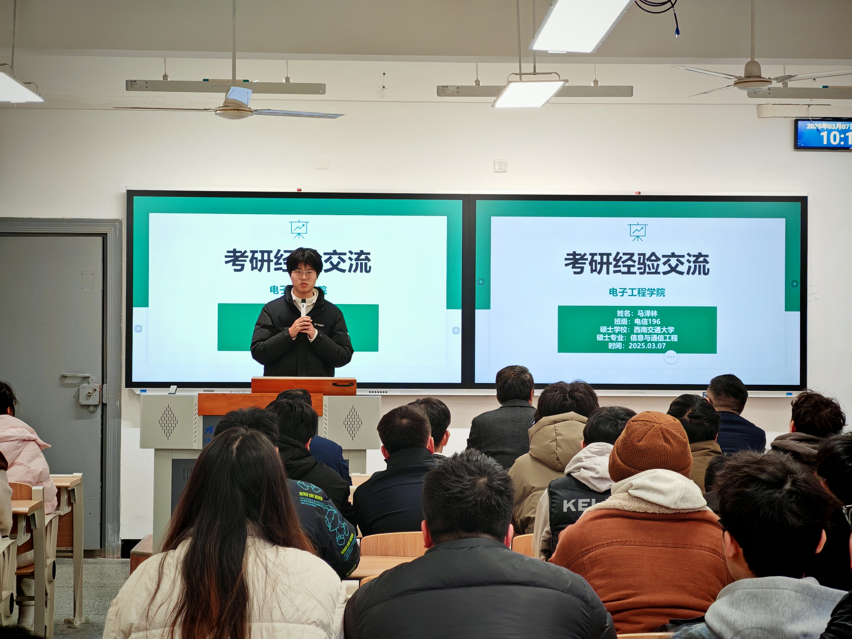 为更好地帮助我院2025届考研同学顺利升学,促进我院考研复试、调剂工作高效完成,电子工程学院导航圆梦职业生涯工作室于3月7日精心组织了一场考研复试、调剂经验交流会。学院党委书记缪燕平,院长张福贵,党委副书记杨勇,副院长王皓,学生科长阮丽娜,研究生科长陈文雯,辅导员曹双平、谢阳,24届考研学生代表马泽林、何文博、张国庆、陈瑞杰、蓝梓豪,及25届考研学生参与本次交流会。