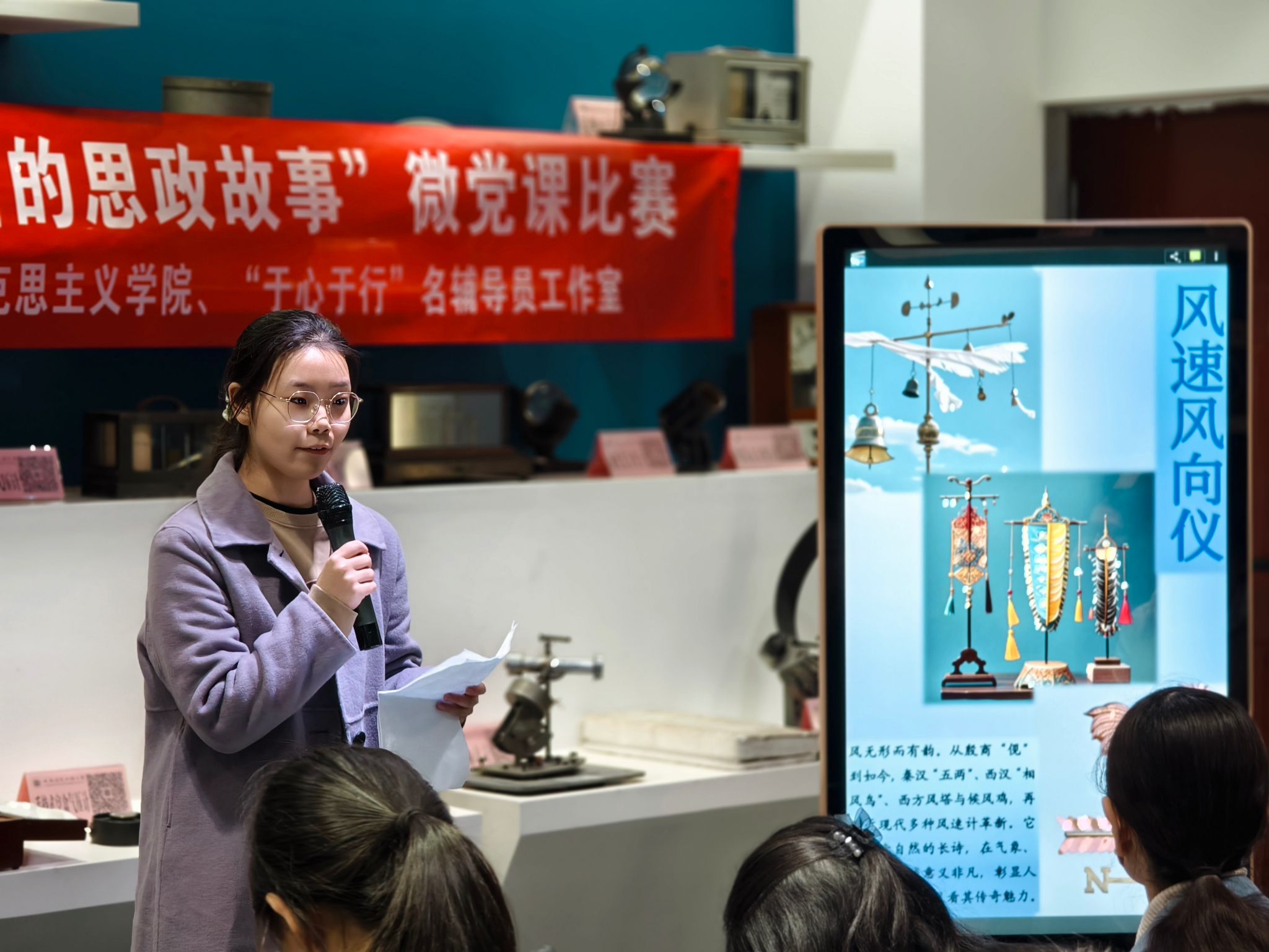 为了发掘收集老一辈气象专家艰苦奋斗的故事,结合学校气象背景气象历史充分挖掘气象仪器背后的故事,打造具有鲜明气象特色的大气探测博物馆里的思政故事。12月5日下午,学校“博物馆的思政故事”微党课比赛在学校大气探测博物馆举行。本次大赛由学校学生工作部(处)主办,电子工程学院(大气探测学院)、马克思主义学院、“于心于行”名辅导员工作室承办。学生工作部(处)阿尔祖古丽·阿卜来提、电子工程学院学生科科长阮丽娜、马克思主义学院教研室主任肖艳、大气科学学院团委书记苏露、资源环境学院学生党支部书记江慧为本次比赛评委,学校各学院党员、学生代表参加了此次活动。