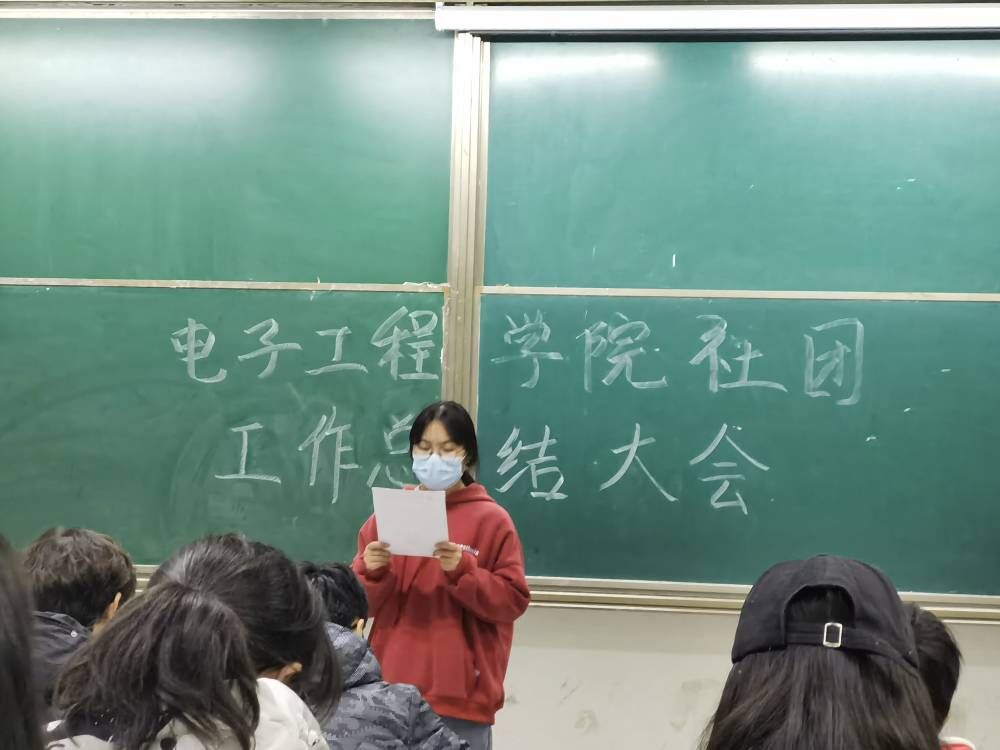 【本网讯】冷冽的寒风刚刚送走了秋的明媚,光秃秃的树枝昭示着冬早已来临。为了增强电子工程学院社团的工作能力、加强电子各社团之间的友谊协作能力,2021年12月9日周四晚8点,由我院院学生会活动部举办的电子社团第一次工作总结大会在1307教室举办。