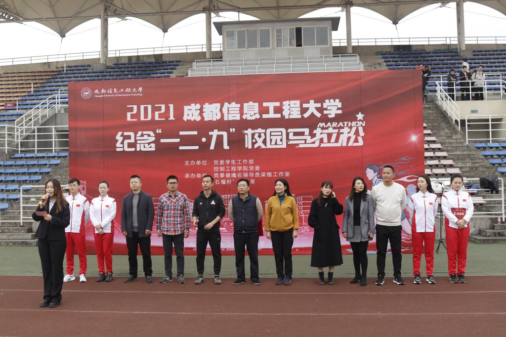 活动开始,由学校领导致开场词,指出大学生应时刻牢记“一二九运动“的革命精神,努力学习,迎接新的挑战,跑好人生的马拉松,并预祝各位参赛人员取得好成绩。随后激动人心的马拉松比赛在一声枪响中正式开赛,选手们如潮水涌出,迈着矫健的步伐向前跑动,用热情点燃了寒冷的天气,跑出了速度与激情,跑出了活力和风采。经过激烈的角逐,选手们陆陆续续地出现在终点线,所有人都坚持到了最后,不论成绩如何,同学们拼搏的精神,互助的精神,都展现了成信人敢于拼搏,团结协作的精神风貌。赛后,参会嘉宾与获奖选手合影留恋,本次活动圆满结束。