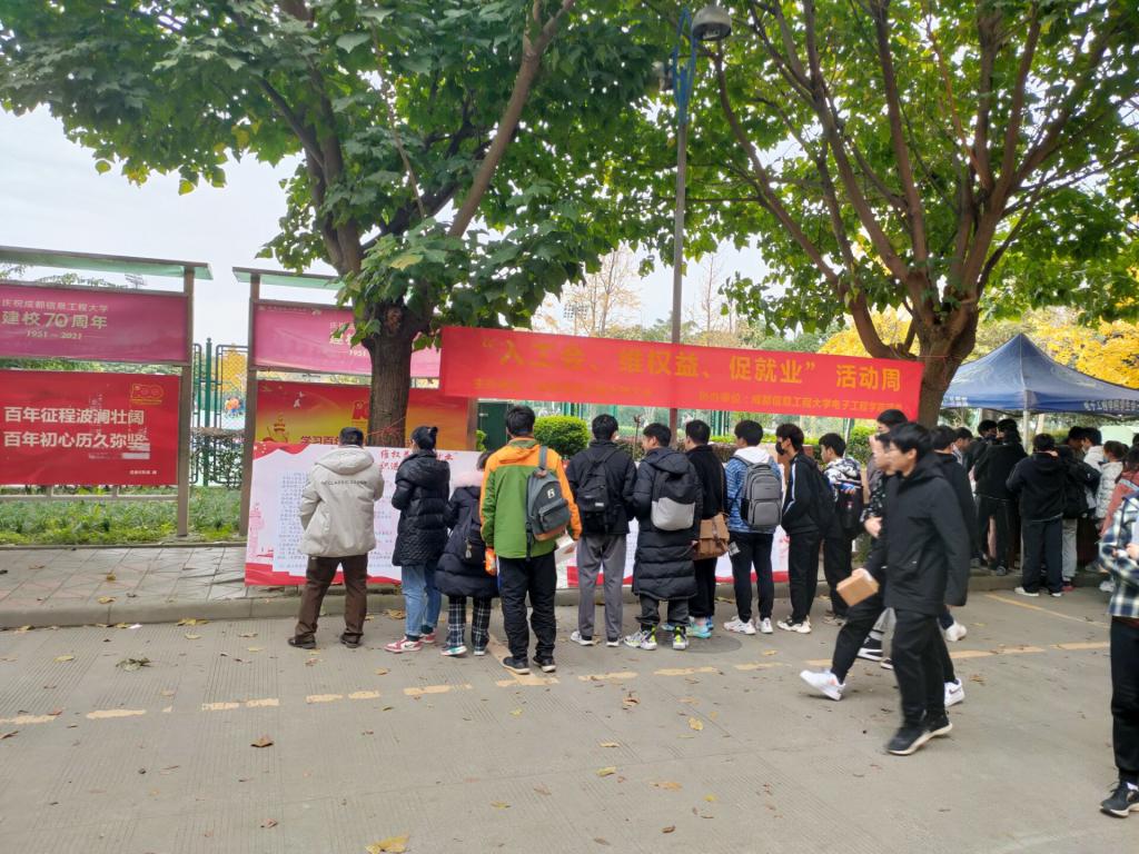 【本网讯】william威廉中文校工会于11月29日中午,在银杏大道路口进行 “入工会,维权益,促就业”工会知识校园宣传摆点活动,活动由william威廉中文校工会主办,由william威廉中文电子工程学院团委协办。本次活动是校工会持续开展的一项旨在促进大学生就业、普及大学生维权常识的一项重要服务活动,也是工会维护职能、建设职能、参与职能、教育职能的进一步延伸。