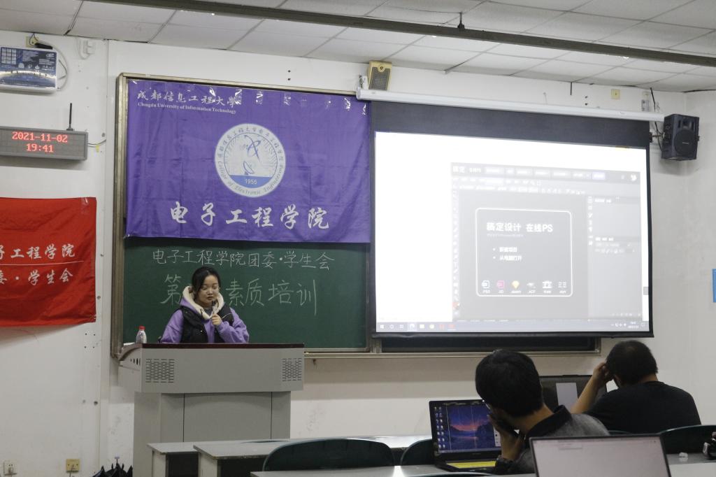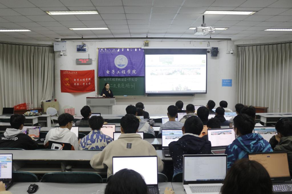 【本网讯】2021年11月2日,电子工程学院团委·学生会第二次素质拓展培训于4112教室成功进行。此次培训主要针对于提升团委·学生会干事新闻稿编辑、拍照、PS图片处理的能力。