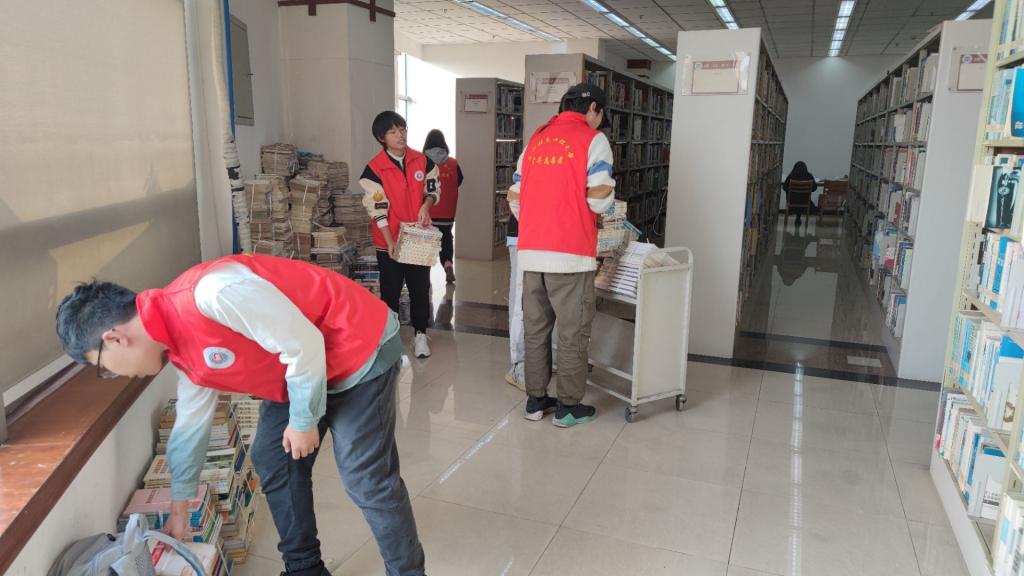 志愿者们提前10分钟在图书馆门前集合,统一穿上志愿者服并仔细整理自己的着装。志愿者们分成两队,一队负责将书籍整理好并放上推车,另一队则负责将推车上的书籍运送到图书馆一楼保管室。在整理书籍的过程中,志愿者们合作默契,用一个小时将所有的旧图书运完,结束了此次的志愿活动。