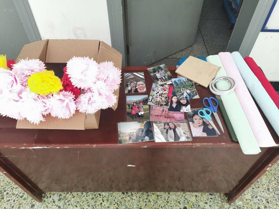 本次活动由前期宣传和正式活动两部分构成。前期向报名人员征集自己与母亲同框的照片。正式活动时,我们将接收到的照片打印出来,配合小礼品(由我们工作人员手工折的花)于母亲节当天送给大家。在现场,同学们拿到合照时的惊喜,充分展现了我们活动的意义。
