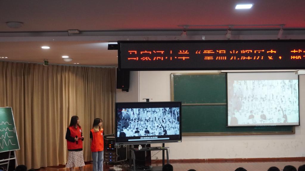 在活动开始前,志愿者们提前们到达讲座举办的场地,并在小学负责人的帮助下完成了对场地的布置。由于距离活动开始还有一段时间,于是志愿者们进行讲座彩排。活动时间到了,小朋友们在老师的带领下有序进入会场,部分志愿者在一旁维持秩序。讲座开始,首先介绍了党的历史,期间向小朋友们提问中国共产党是哪一年成立的,绝大部分同学都异口同声的说道1921年,其他一些问题也都被正确回答。之后以一段短视频展示党的艰辛历程,当被问及看完视频后自己的内心有何感想时,台下的小朋友积极举手,回答问题的小朋友们获得了奖品,这让他们的朋友更加积极举手回答问题,希望自己也能够获得奖品。接下来就是猜英雄人物名字的环节,志愿者们讲述英雄的事迹,小朋友们回答英雄名字。没想到都小朋友们对王二小,雷锋,邱少云等人的事迹了然于胸,还讲述了自己心中的其他英雄人物的事迹,如林则徐虎门销烟,抗美援朝中黄继光的故事。最后,我们让小朋友们把自己想对祖国母亲说的话写在便条上,也让他们把自己写的话读出来。