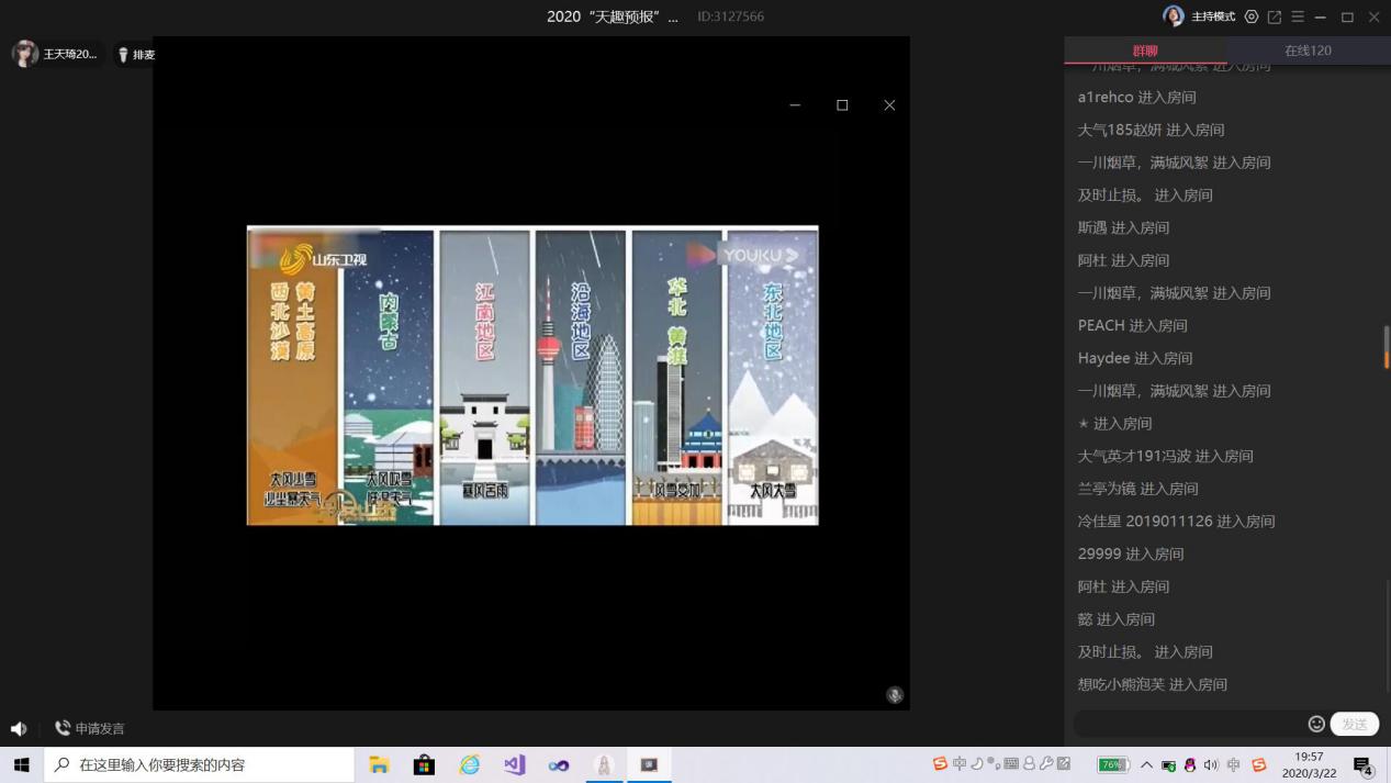 【本网讯】为迎接即将到来的世界气象日,由大气科学学院承办,电子工程学院气象科普(科技)部协办的线上活动“天趣预报”于2020年3月22日晚上19时正式开展。