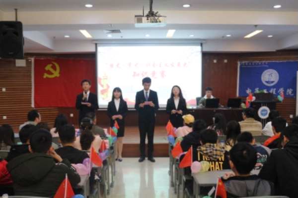 【本网讯】为庆祝新中国成立七十周年,加深同学们对国史、党史和社会主义发展史的了解,10月31日晚,电子工程学院在学术报告厅开展 “不忘初心、牢记使命”主题教育之“国史、党史、社会主义发展史”三史知识竞赛。到场的嘉宾有电子工程学院党委副书记杨勇老师、电子工程学院学生科副科长肖艳老师、电子工程学院团委书记周意超老师、各学院参赛的选手、电子工程学院的全体党员、预备党员、积极分子以及部分同学代表。