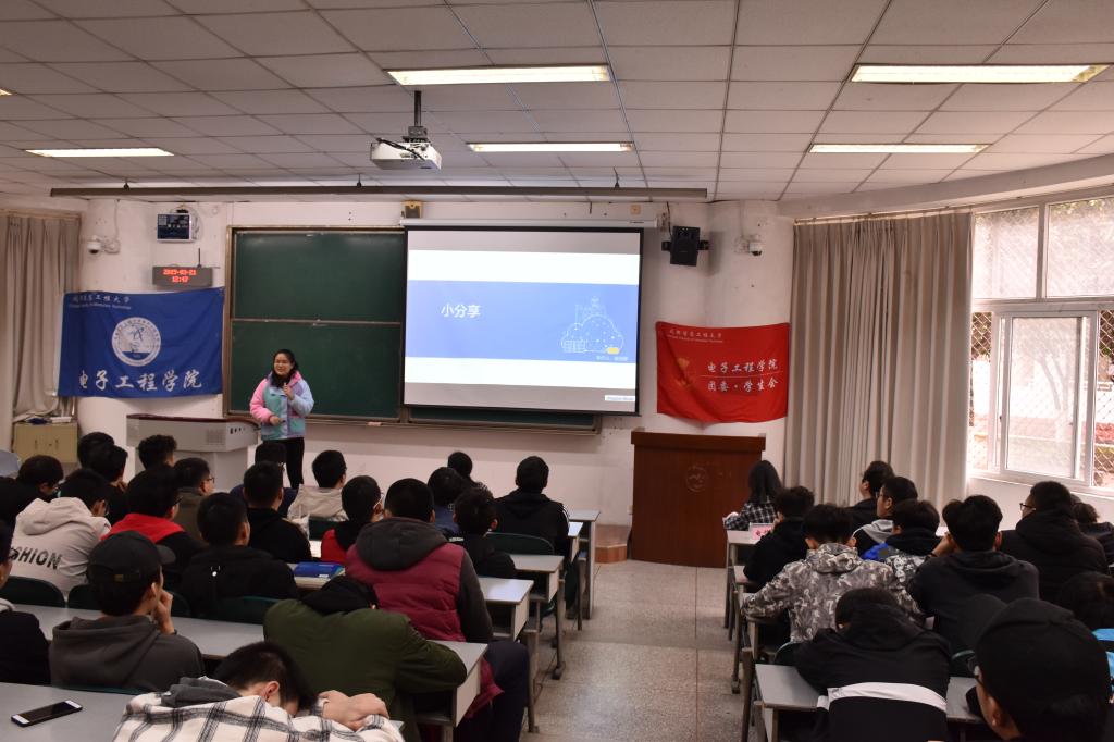【本网讯】2019年3月21日中午,电子工程学院团委主办,电子工程学院学生会学习部承办的学习经验分享会于4112和4213教室召开。其中,电信专业的分享会于4112教室召开,电科与医工专业的分享会于4213教室召开。本场活动的嘉宾有:电子工程学院党总支书记缪燕平,电子工程学院党总支副书记杨勇,电子工程学院学工办主任蒋志忠,电子工程学院学工办副主任兼17级电信专业辅导员阮丽娜,电子工程学院团委书记兼17级电信专业辅导员周意超,电子工程学院17级电科及医工专业辅导员曹双平。