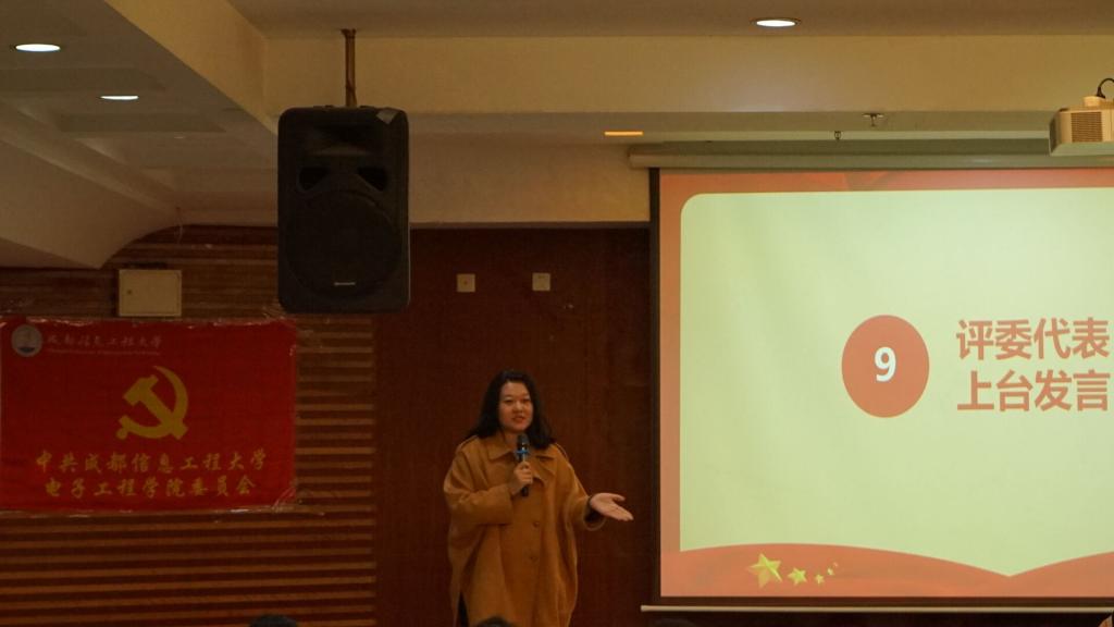 2022年11月4日晚19:00,由电子工程学院党委主办,电子工程学院团委承办的“学习党的二十大,永远跟党走,奋进新征程”演讲比赛暨红诗红歌比赛在学术报告厅举行,本次参加活动的有电子工程学院党委副书记杨勇,学校“石榴籽”少数民族工作室主任阿尔祖古丽,教育厅宣思处驻川工作组新疆派驻学生处张蓓,数学学院学生科科长曾凤娇、应用数学学院团委书记熊渠,数学学院辅导员兼“石榴籽”工作室副主任张秋敏,电子工程学院辅导员刘韵、周意超、谢阳、电子工程学院团委书记苏露及电子工程学院学生。