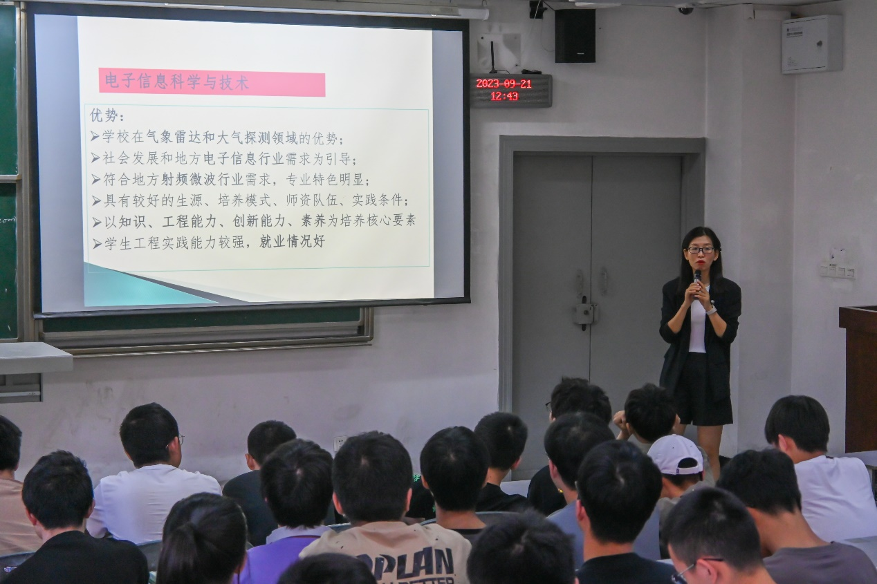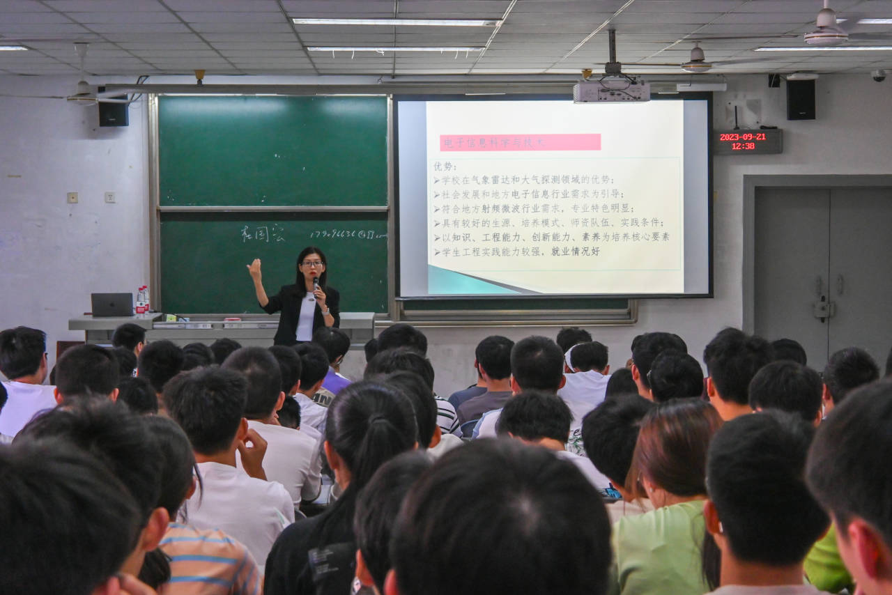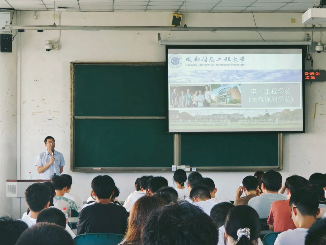 金秋九月,丹桂飘香。9月21日中午12:30分,电子工程学院2023级新生专业教育课在我校航空港校区H1405和H4313举行。电子工程学院副院长杨智鹏和学院电子信息科学与技术专业负责人杜国宏分别向电子信息工程和电子信息科学与技术专业的同学们进行了专业介绍。