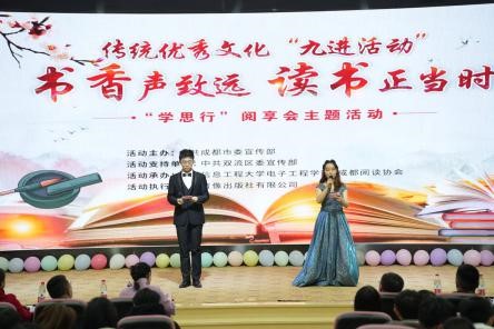 本次活动是为了贯彻落实中共成都市委宣传部优秀传统文化“九进活动”精神而开展的阅读活动。活动主办单位为中共成都市委宣传部,支持单位为中共双流区委宣传部,执行单位为成都音像出版社有限公司。双流区委宣传部、成都阅读协会、学校学生处、校团委的专家、领导以及电子工程学院的两百余名师生参加了此次活动。