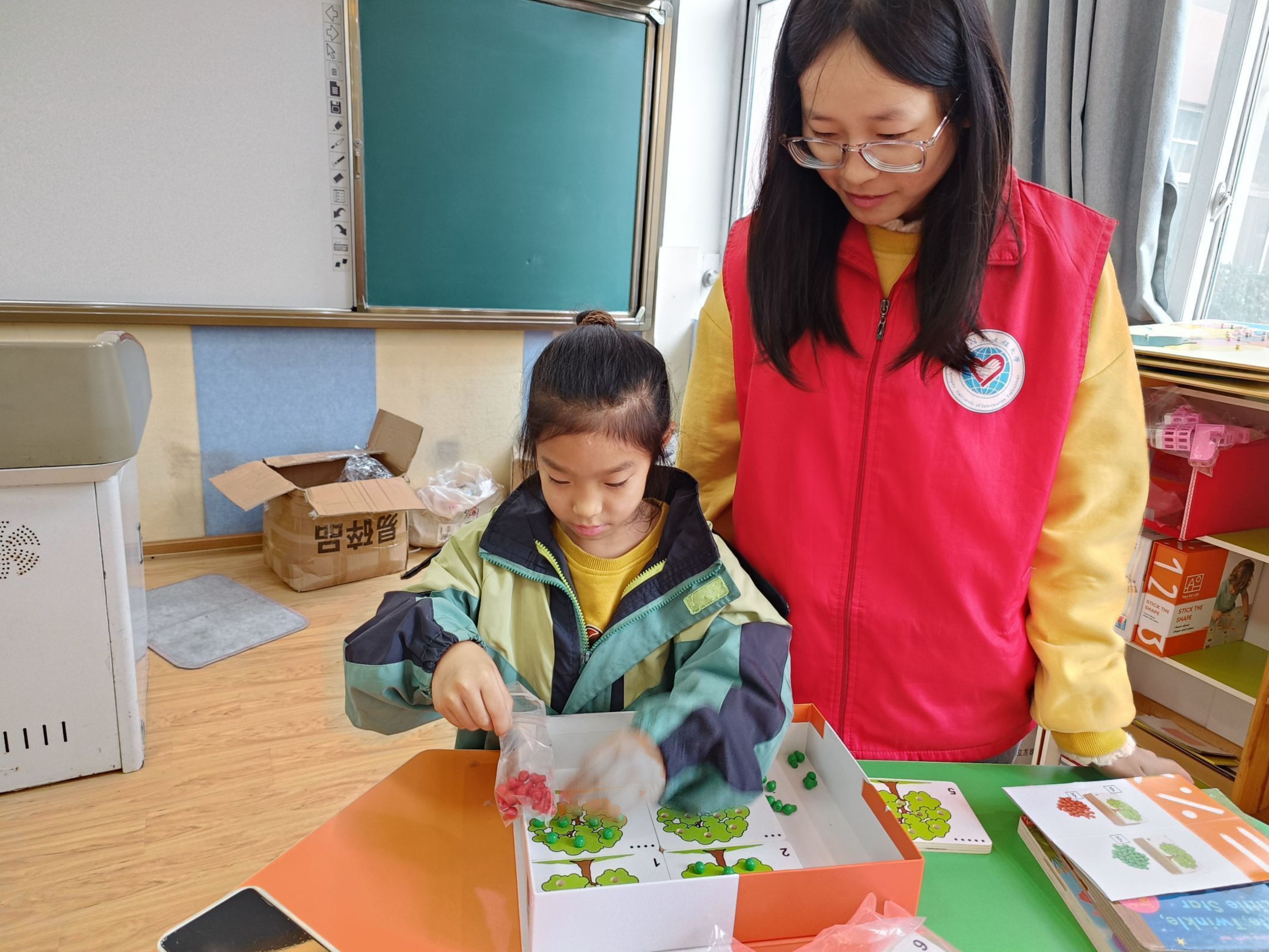课堂开始前,志愿者们会提前到达教室,做好上课准备。课堂上,志愿者们向小朋友讲授小学课本内容,在学习过程中,小朋友们积极配合“志愿者小老师”,开动脑筋思考课本上的问题,积极回答“小老师”提出的问题,志愿者们也会耐心引导上课调皮的小朋友,让他们重新投入课堂。同时,为了激发孩子们的学习兴趣并提高他们的专注力,志愿者给积极回答的小朋友盖印章,奖励认真听课的小朋友糖果。这些方法提高了小朋友学习的兴趣激发了小朋友参与课堂的积极性,使课堂进行的更加顺利。在整个课堂中,志愿者“小老师们”有耐心,有爱心,更有责任心,给小朋友们树立良好的榜样。