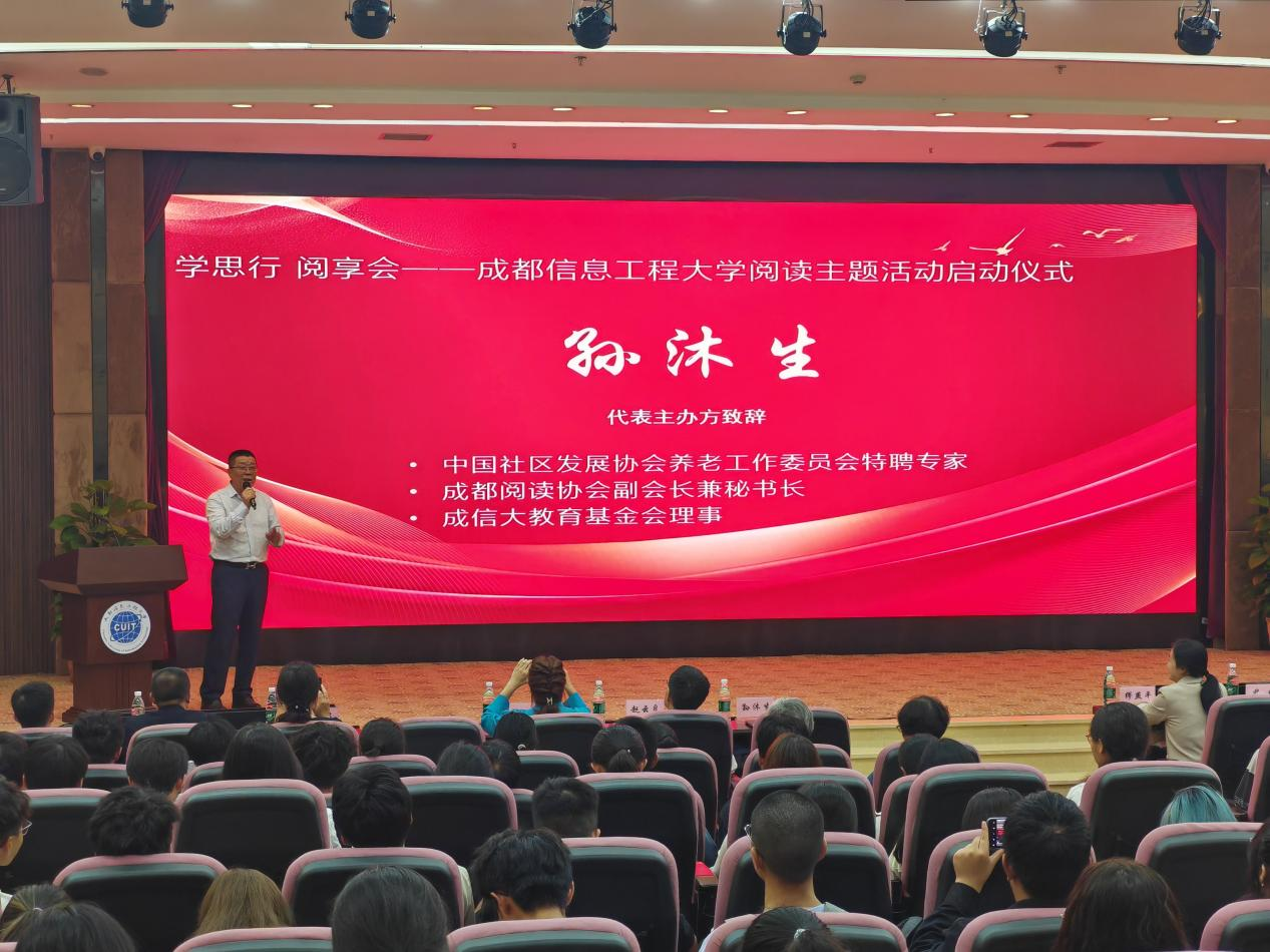 出席本次活动的嘉宾有成都阅读协会副会长兼秘书长、成信大教育基金会理事孙沐生和各地阅读协会代表,成信大校团委副书记尹欣,成信大电子工程学院(大气探测学院)党委书记缪燕平、副书记杨勇,以及成信大师生代表。