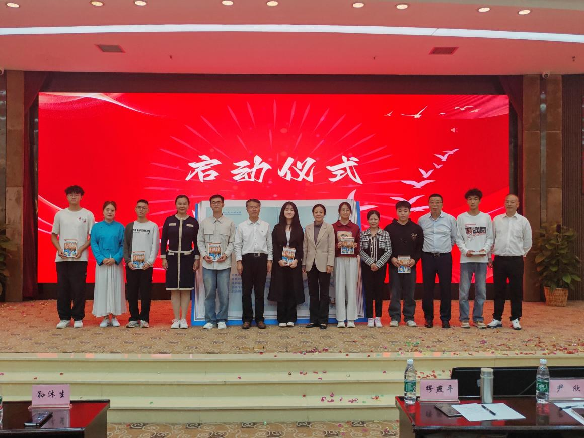到场的嘉宾和同乡师生代表一起上台,共同为2024年“学思行阅享会”揭幕,并向学生代表赠送书籍。电子工程学院(大气探测学院)团委书记刘计带领现场全体人员集体诵读《还乡》,伴随着朗朗读书声,本次启动仪式画上了圆满的句号。